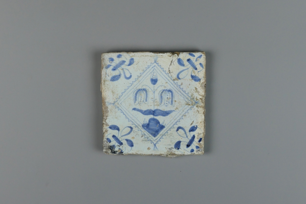 wandtegel, zgn. 3 tulptegels, 17e eeuw