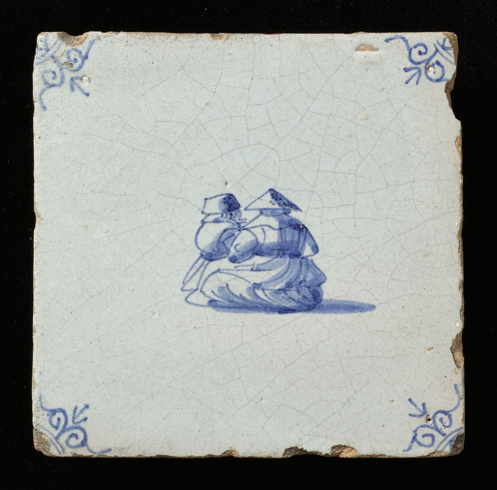 Tegel van keramiek, tinglazuur, voorstellende een be...