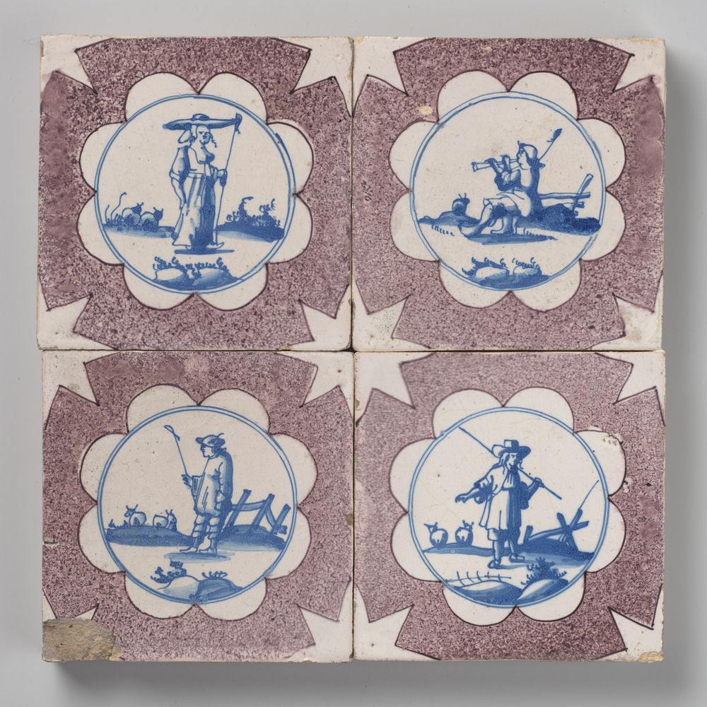 tegelveld, bestaande uit vier tegels van aardewerk m...