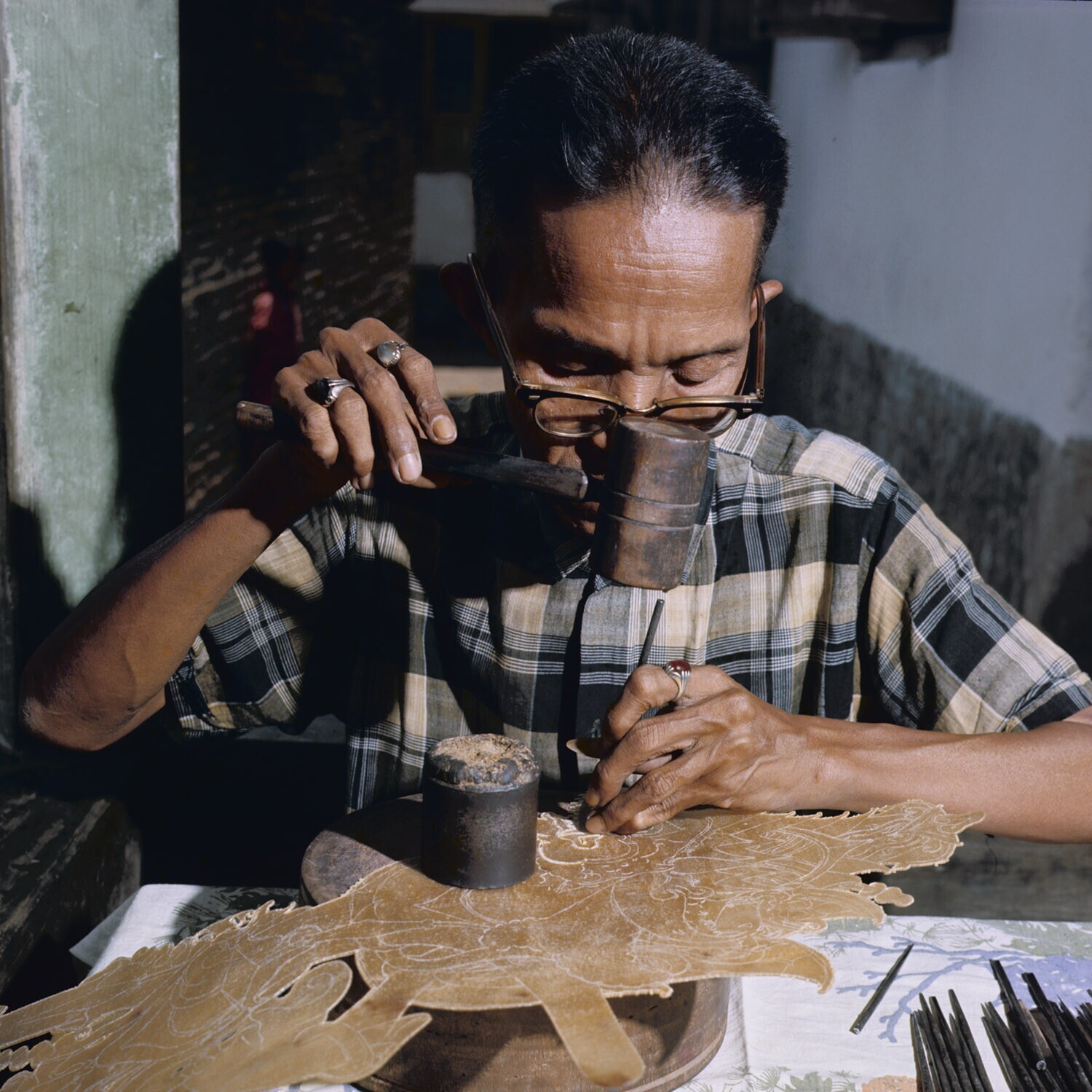 Achterin de winkel van de Fam. Waloejo wordt gebatikt