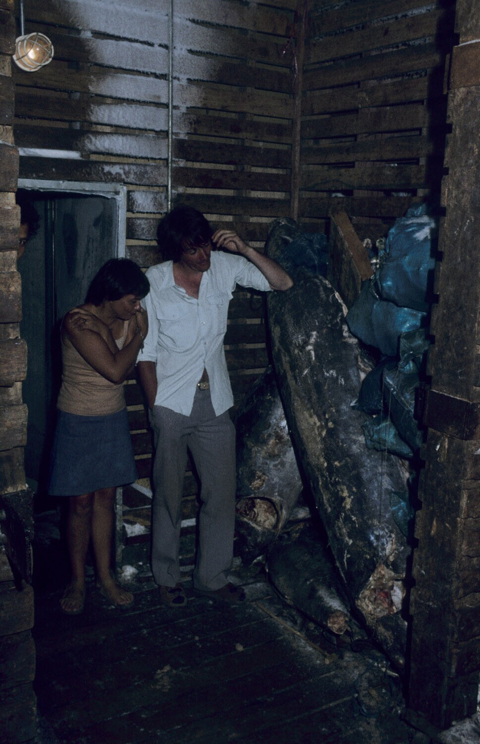 Ingevroren tonijn in een vriescel (-25°C) gereed voo...