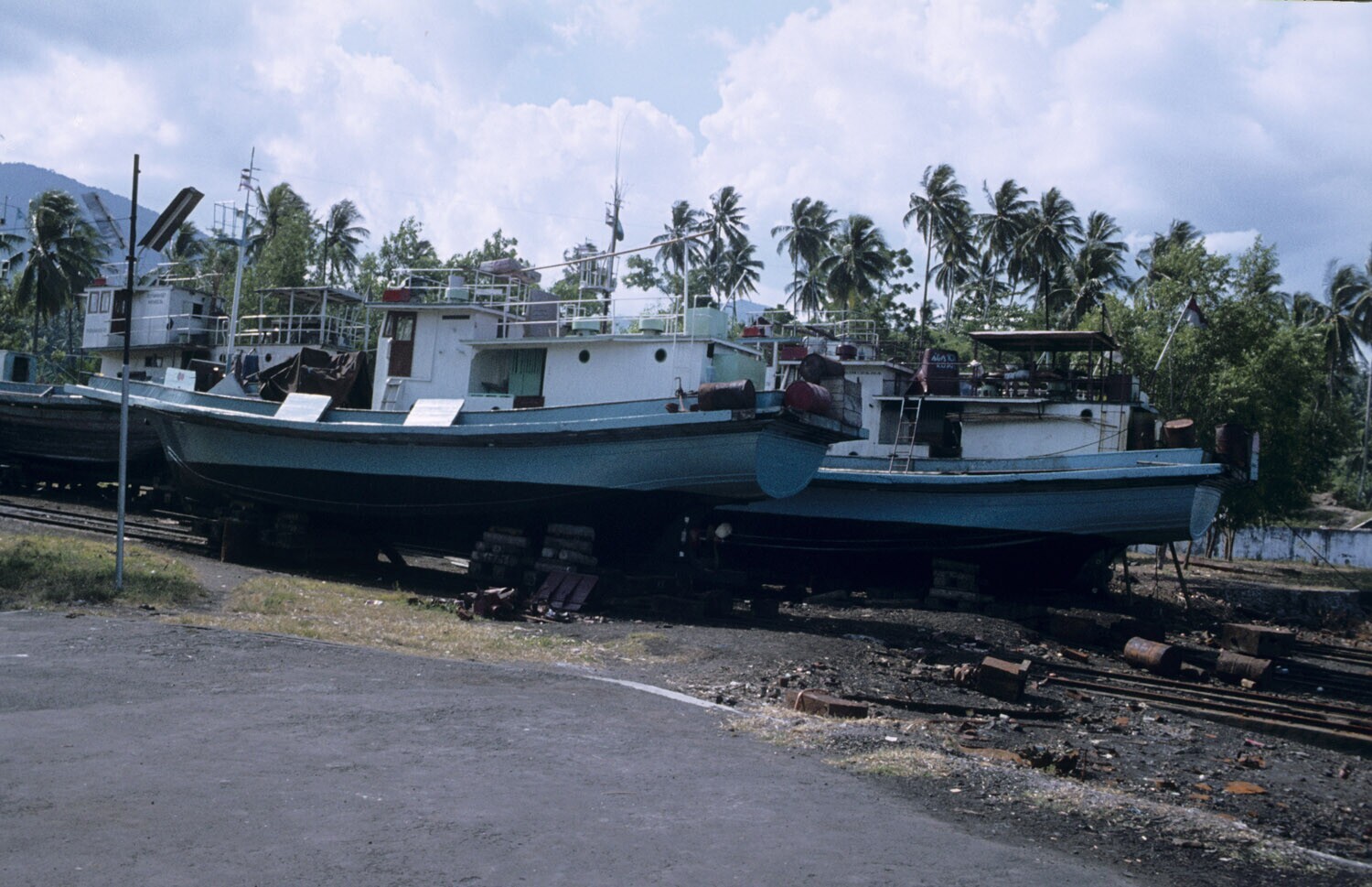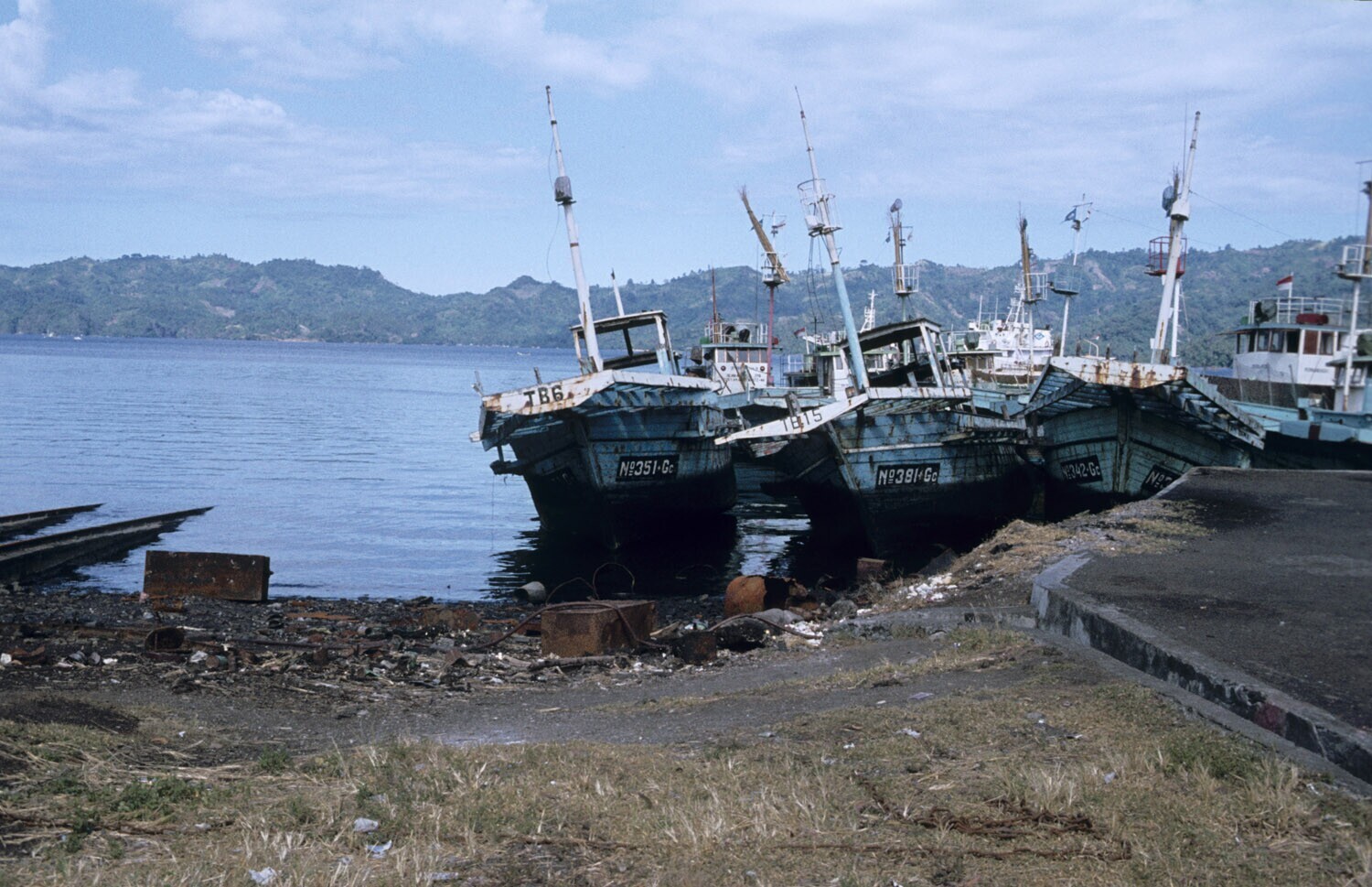 Op de werf in de haven van Bitung, Sulawesi liggen c...