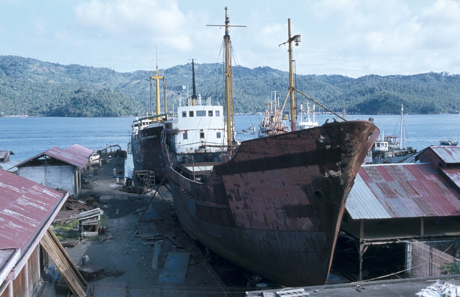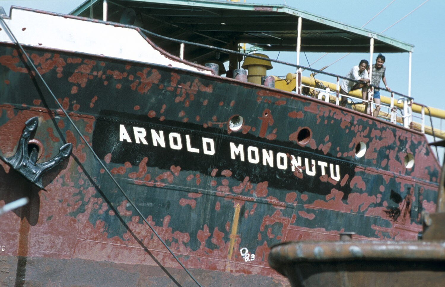 'De ''Arnold Mononutu'' op de werf in de haven van B...