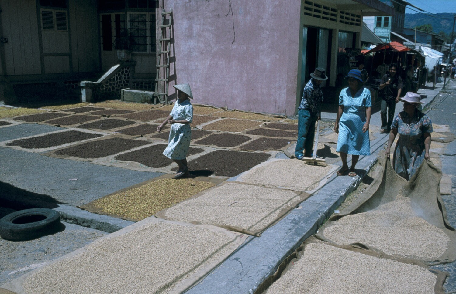 Rechts ligt rijst te drogen, links kruidnagel. Straa...