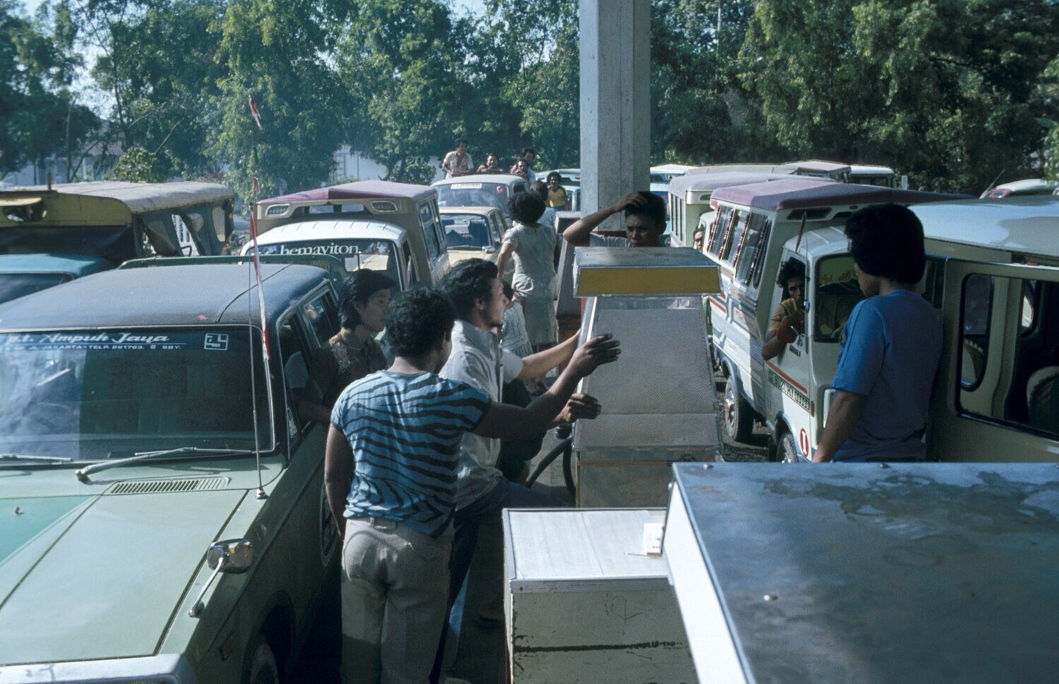 Drukte bij een benzinestation, Bitung, Sulawesi.