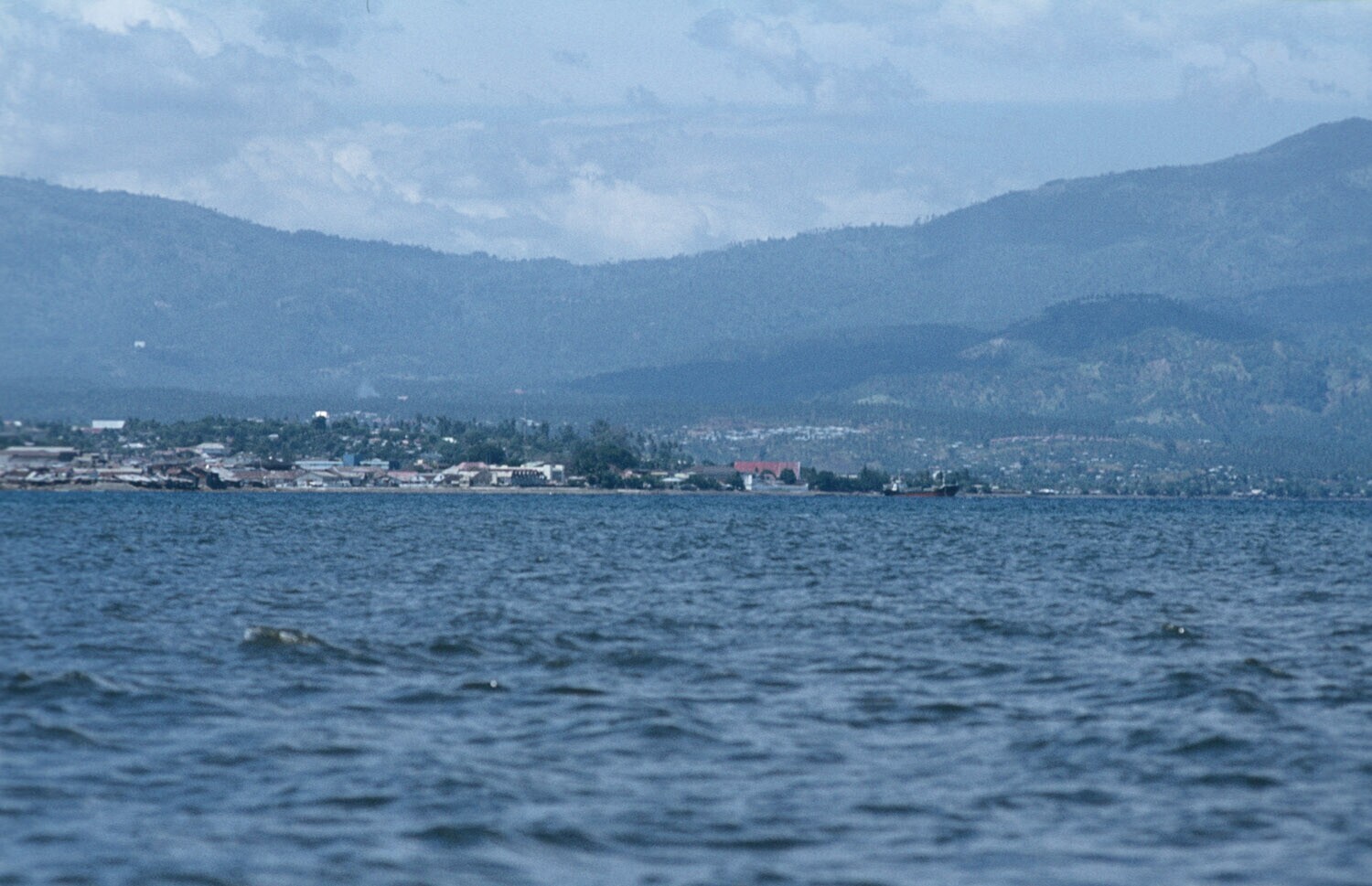 Manado vanaf zee gezien, Sulawesi.