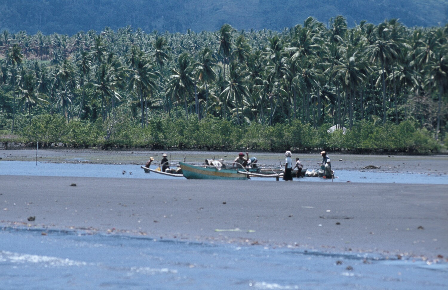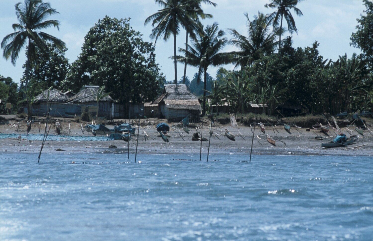 Kust bij Manado, Sulawesi bij hoogwater met vissers.