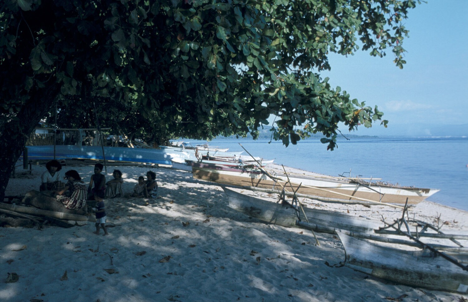 Strandgezicht met vlerkprauwen, bij Manado Sulawesi.
