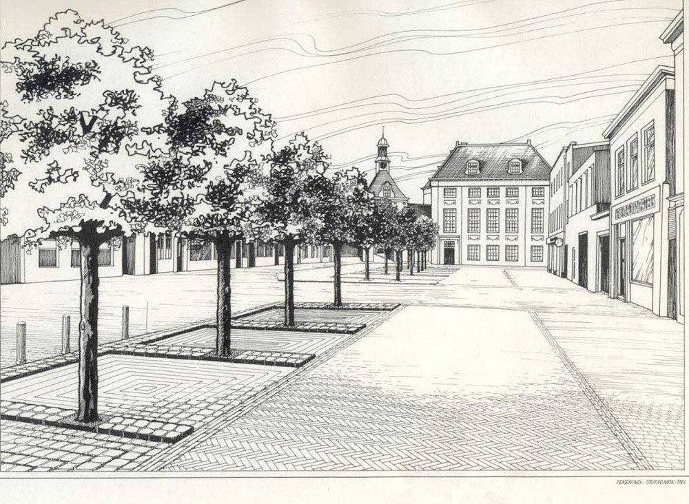 Tekening, voorstellende Het Plein te Tiel, vervaardi...