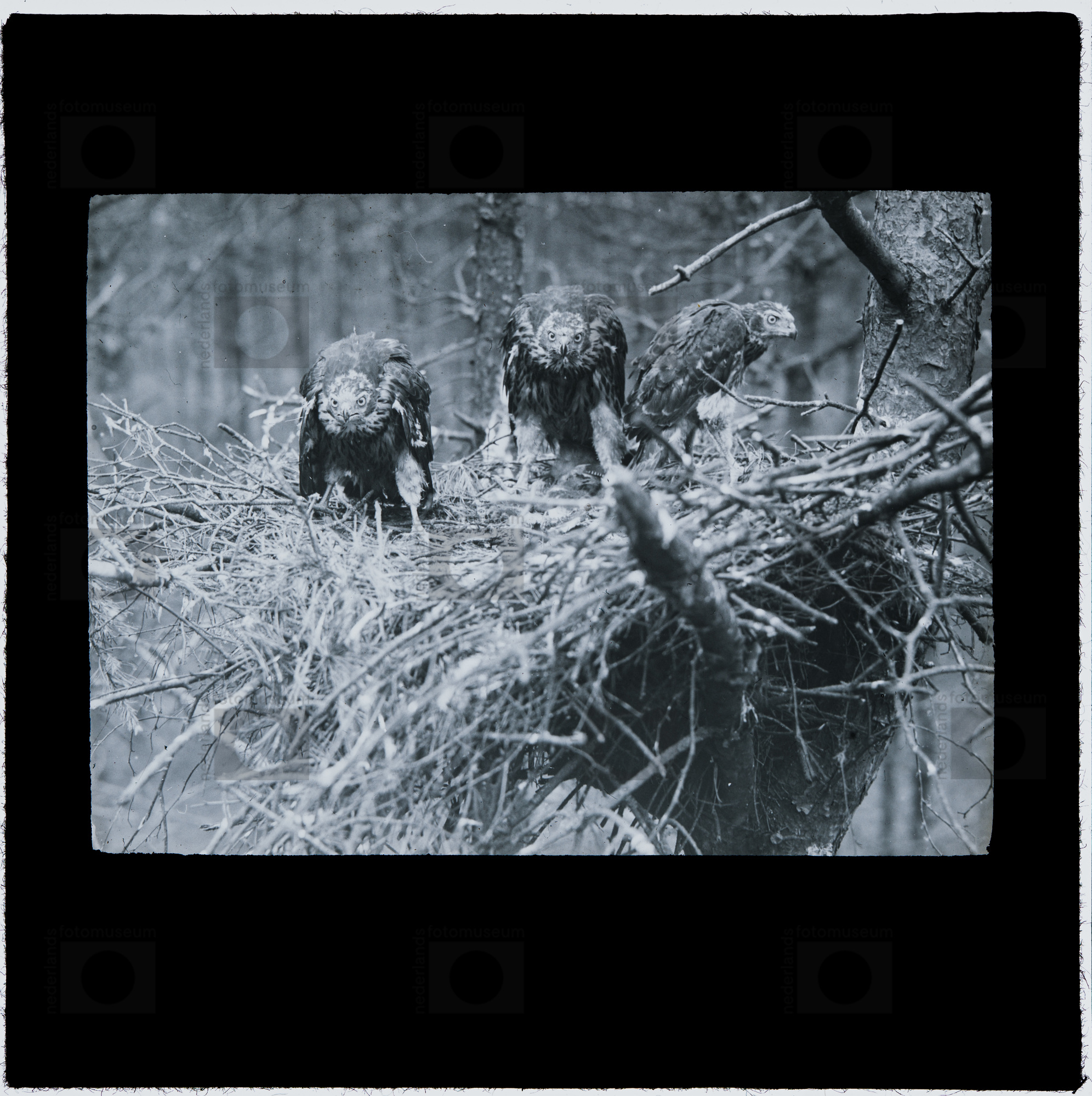 Drie jonge Haviken op nest, Veluwe (1925-1940)