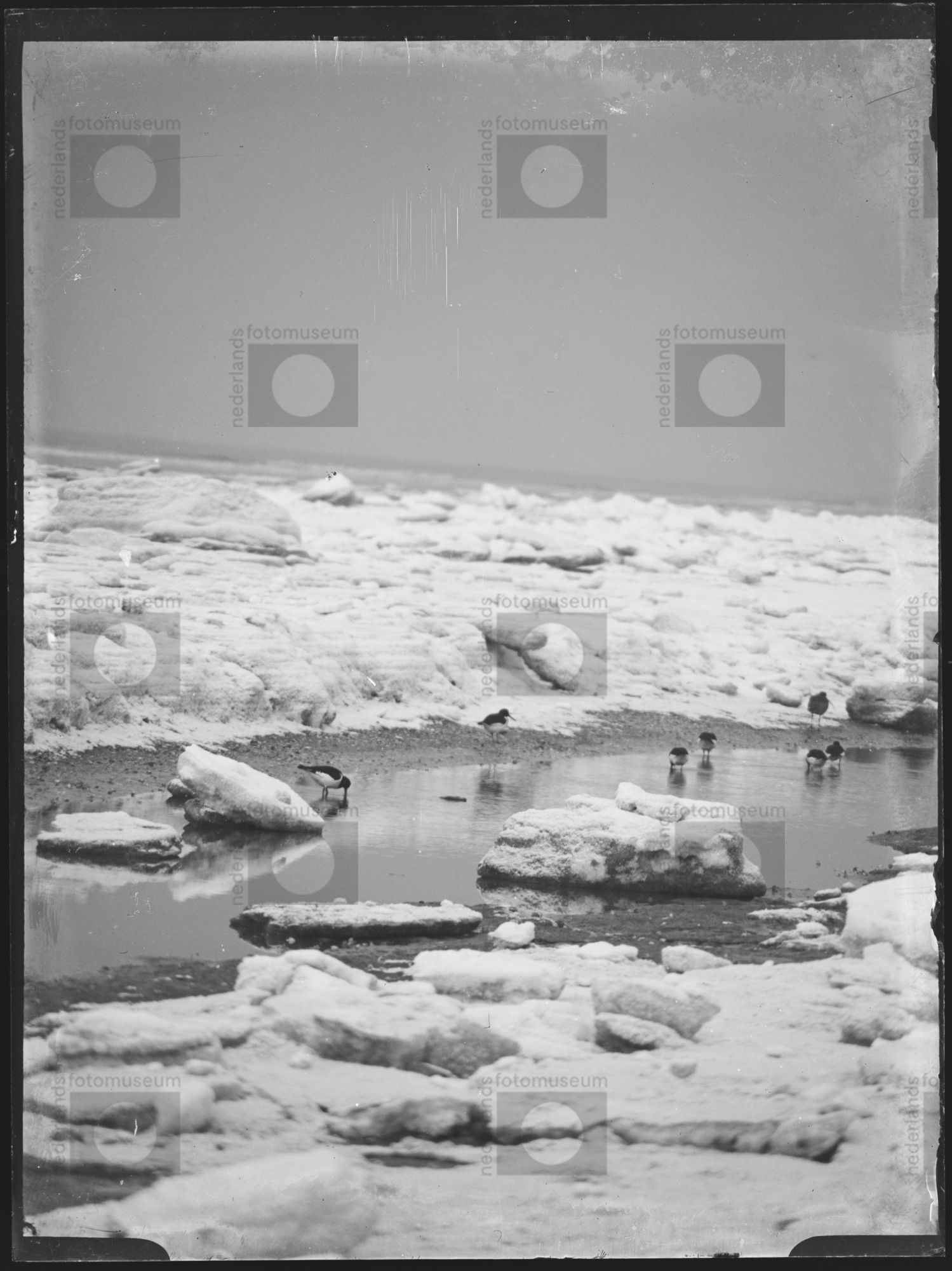 Scholeksters, foeragerend in de winter (z.j.)