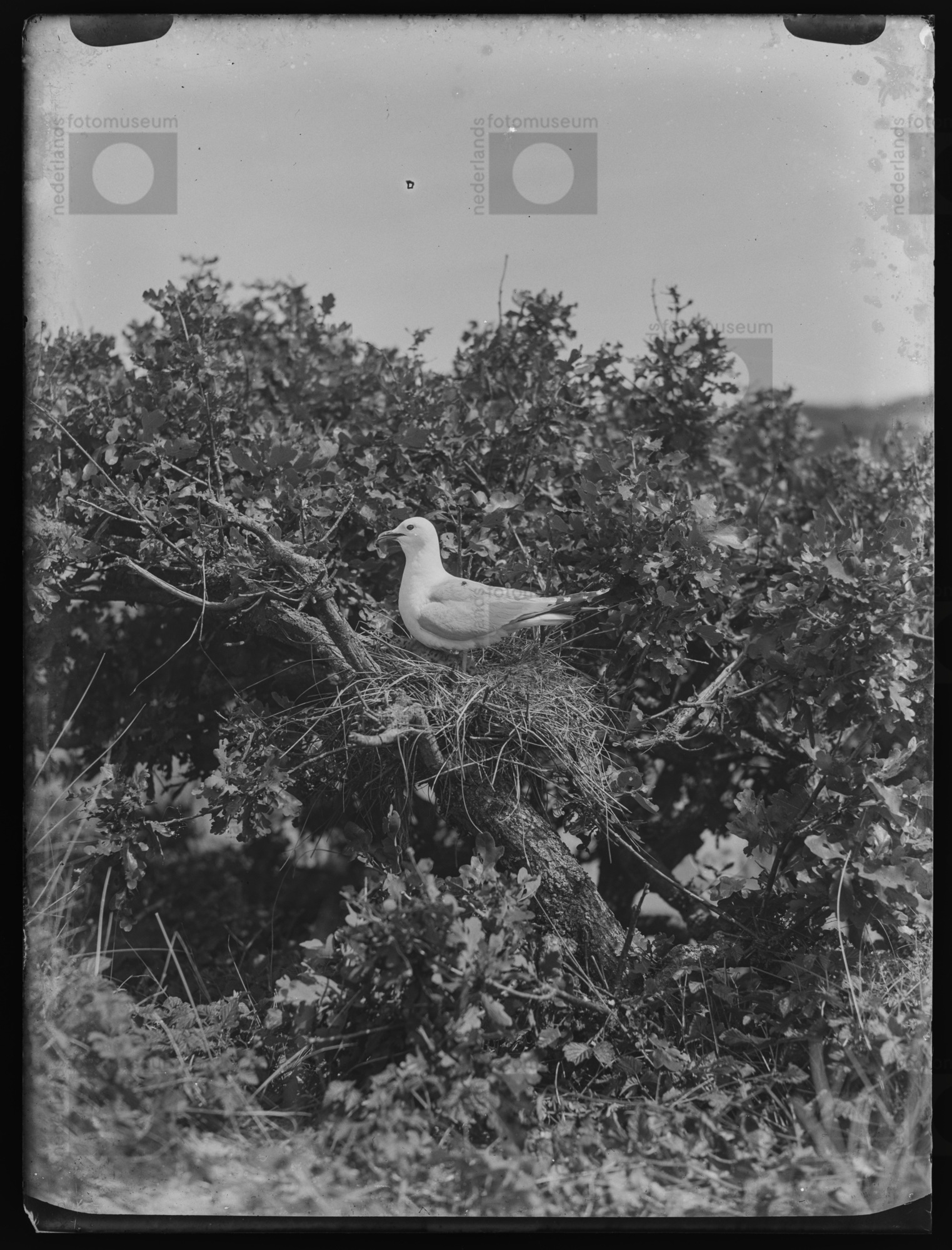 Stormmeeuw met nest met jongen, Bergen (1934)