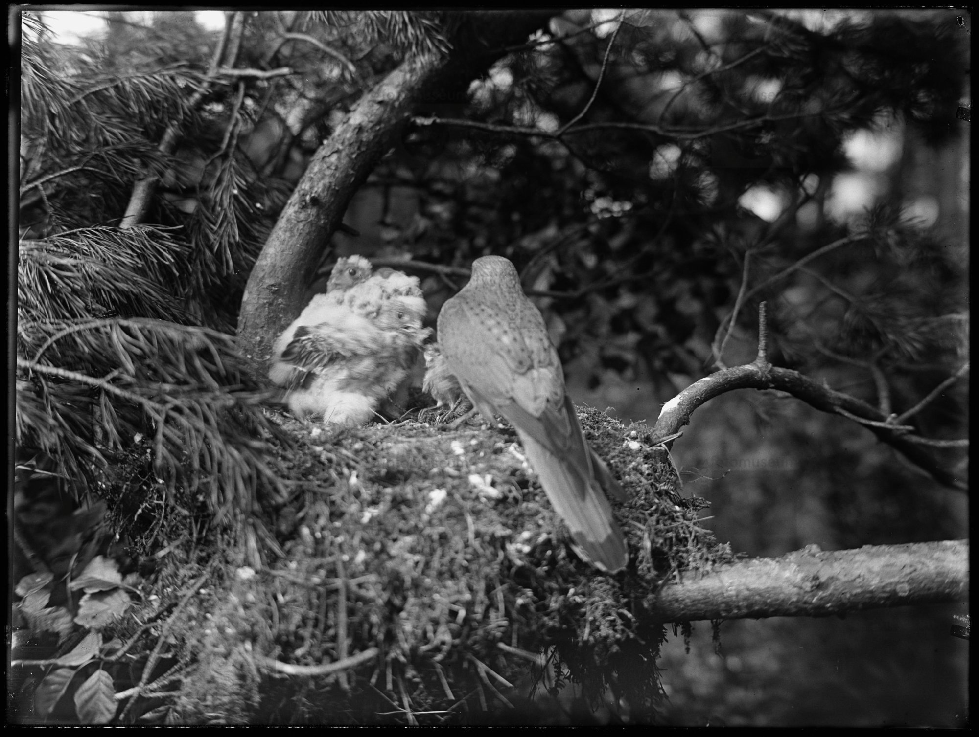 Torenvalk bij nest met jongen, Gietelo (1915)