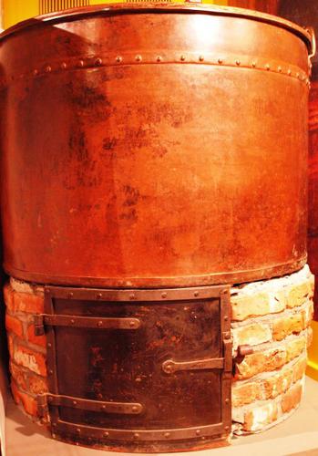 Oven van baksteen en metaal gebruikt om een kaaskete...