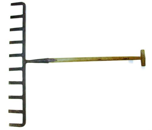Tuinhark van metaal met houten steel gebruikt voor h...