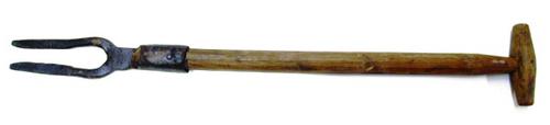 Bietenrooivork van metaal en hout gebruikt om een bi...