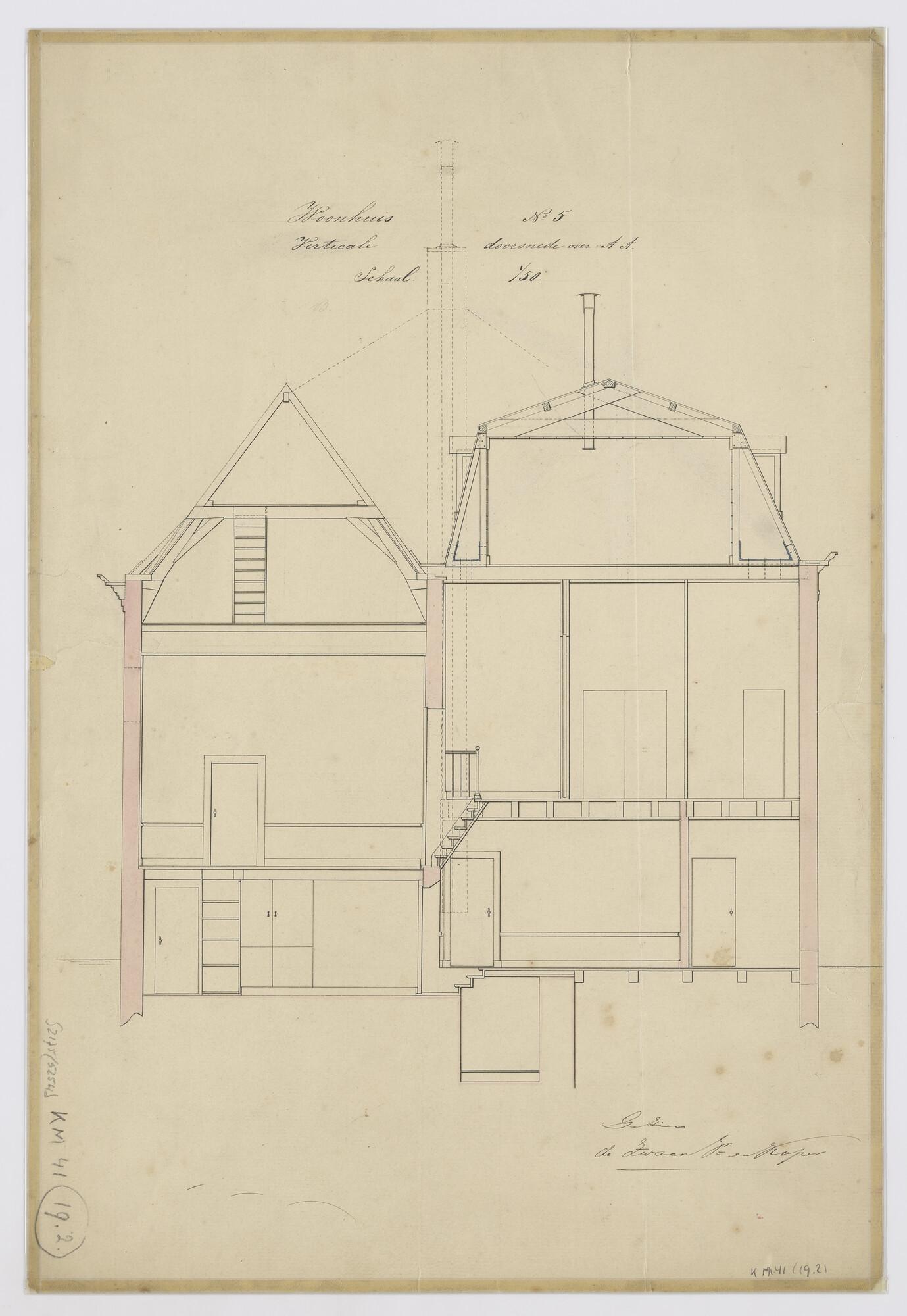 Verticale doorsnede woonhuis nr. 5 (o.m. de uitbouw)...