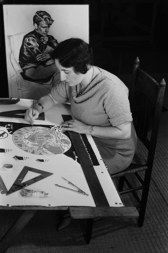 Fré Cohen aan het werk in haar atelier in de Karel d...