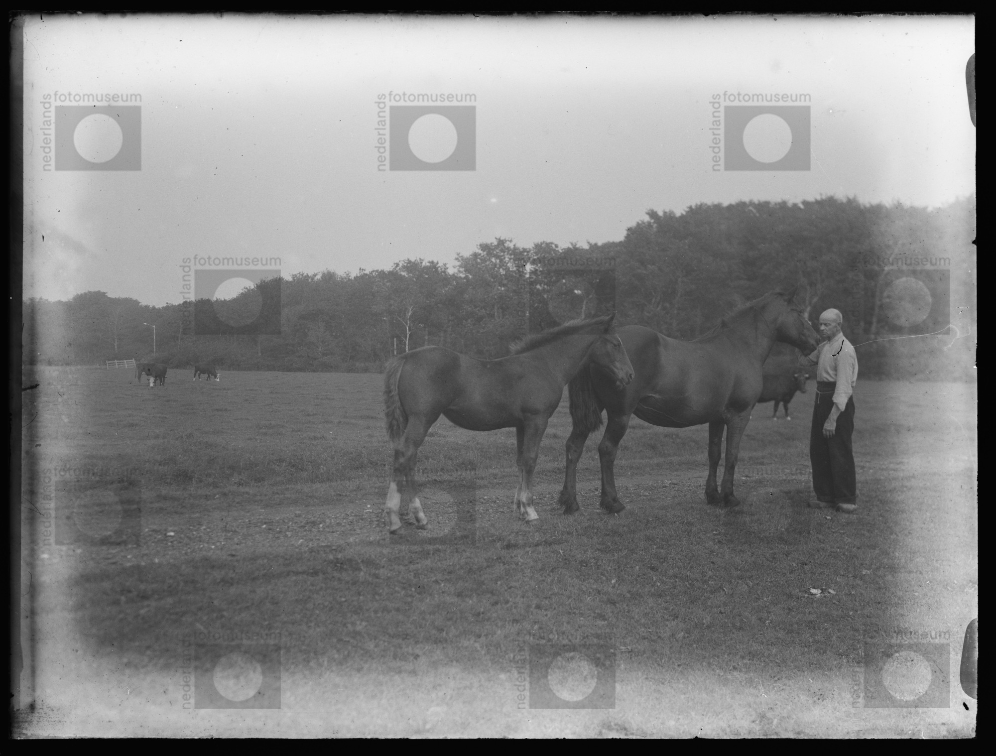 Verzorger bij paard met veulen, Vogelenzang (1946)
