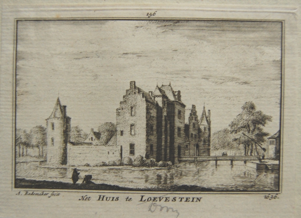 Gezicht op het kasteel Loevestein met bijgebouwen, h...