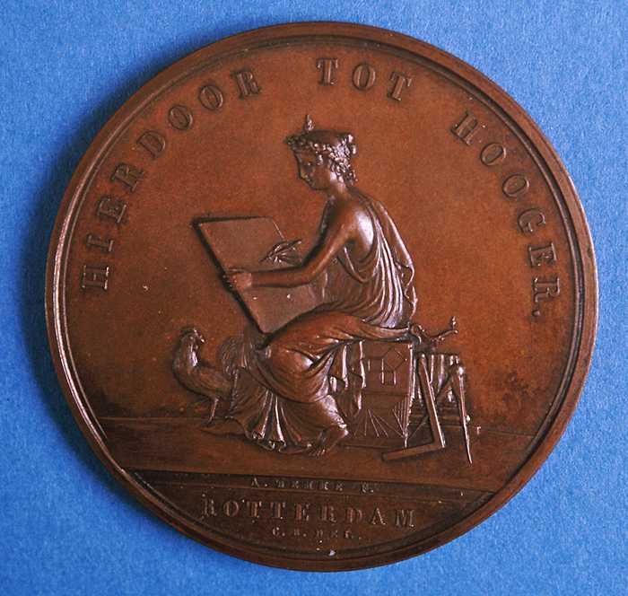 Bronzen prijspenning "Hierdoor tot Hooger", bouwkund...