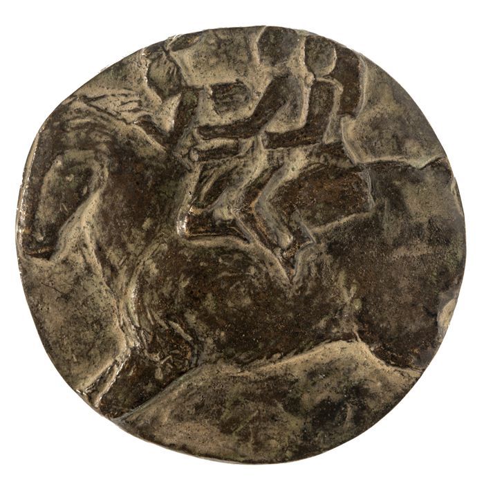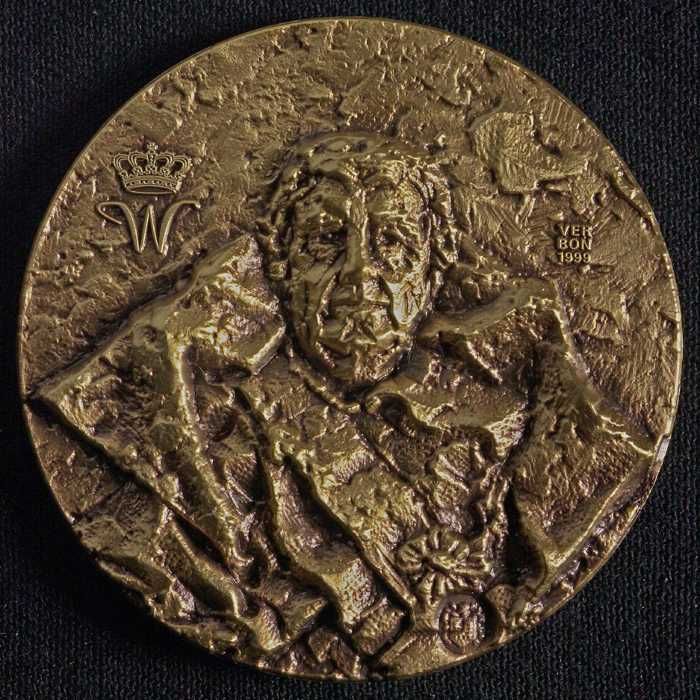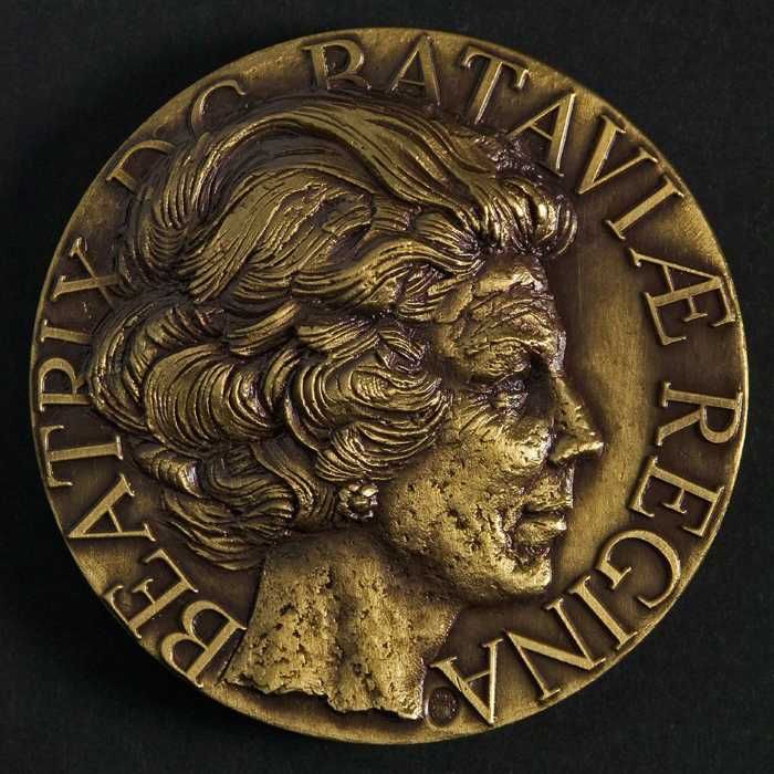 Bronzen penning met koningin Beatrix en ruiterstandb...