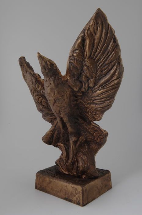 Opvliegende vogel Feniks op een rechthoekig voetstuk...