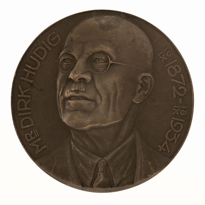 Bronzen penning op mr. Dirk Hudig (1872 - 1934)