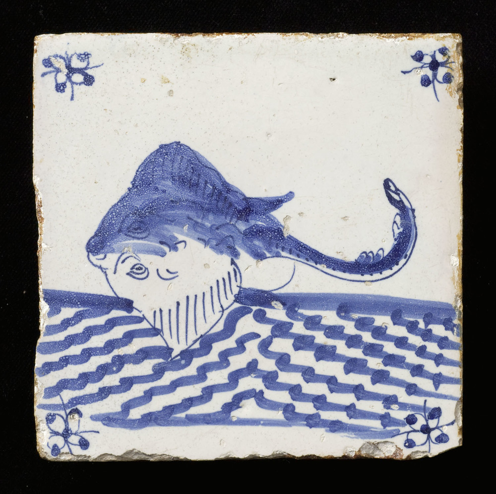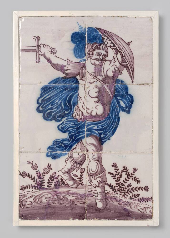 Tegel van keramiek, tinglazuur, voorstellende een zo...