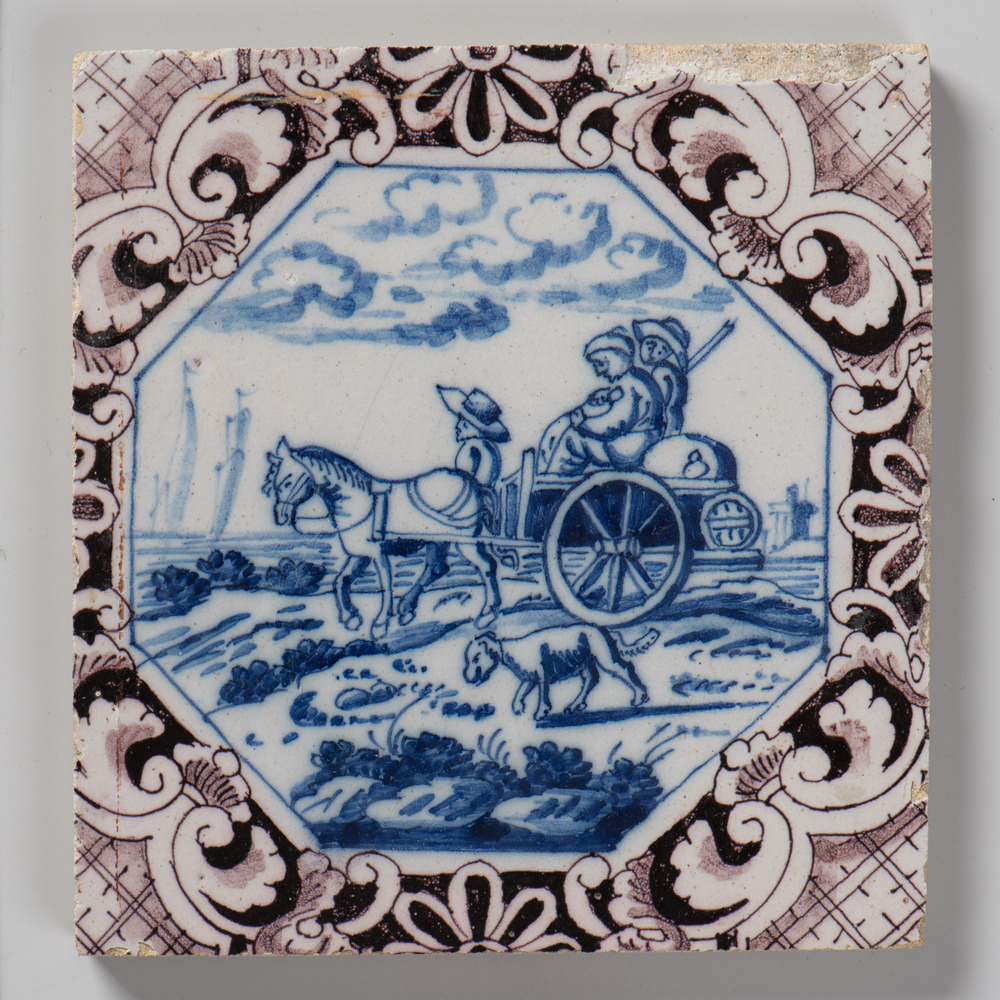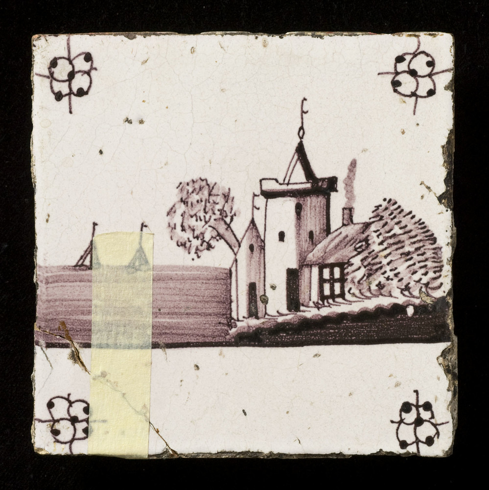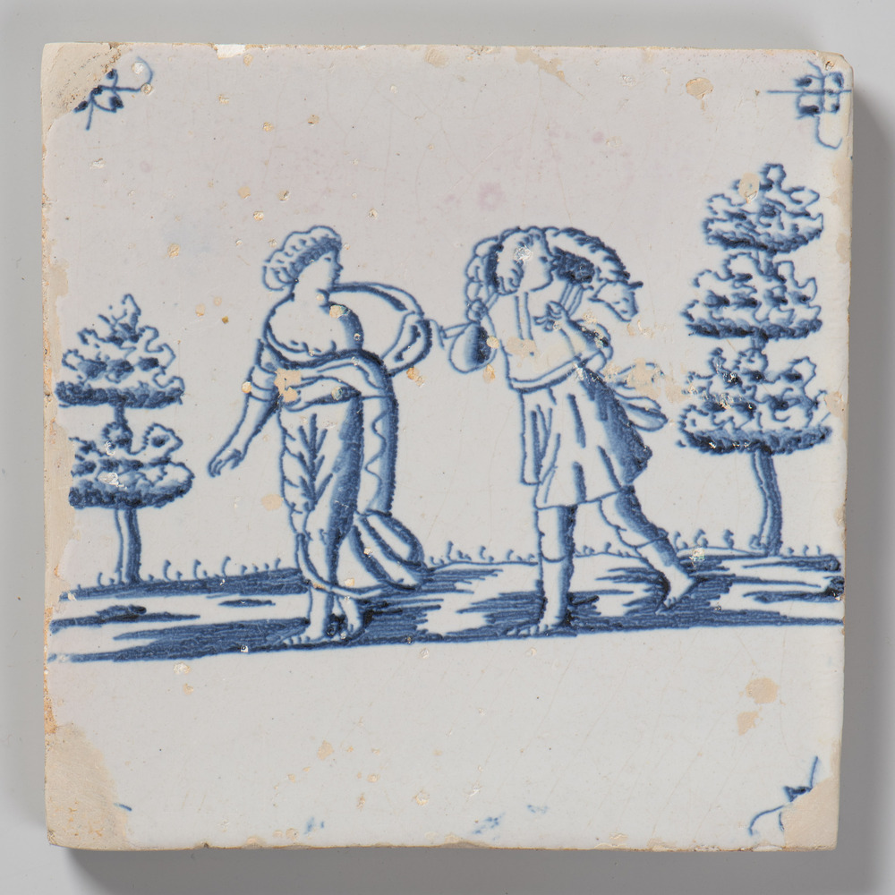 tegel van aardewerk met tinglazuur, voorstellende: h...