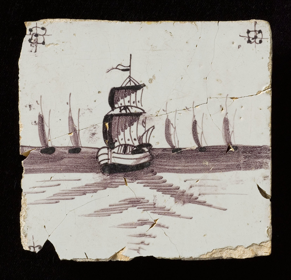 Tegel van keramiek, tinglazuur, voorstellende een sc...