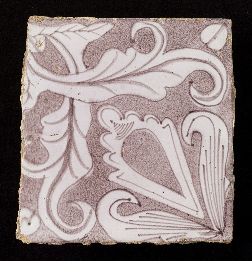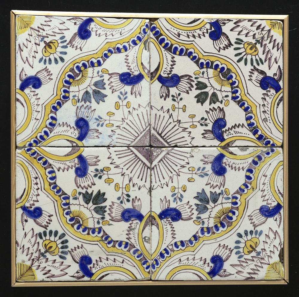 Tegelveld in tinglazuur, voorstellende beugelbladen,...