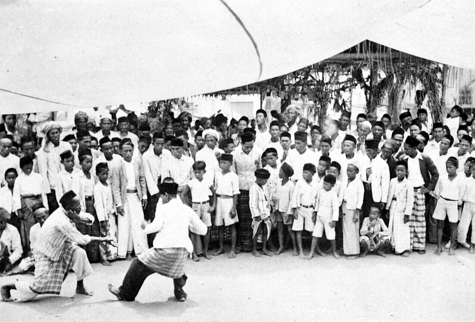 Een Javaanse danser op een stokpaard, in trance, ete...