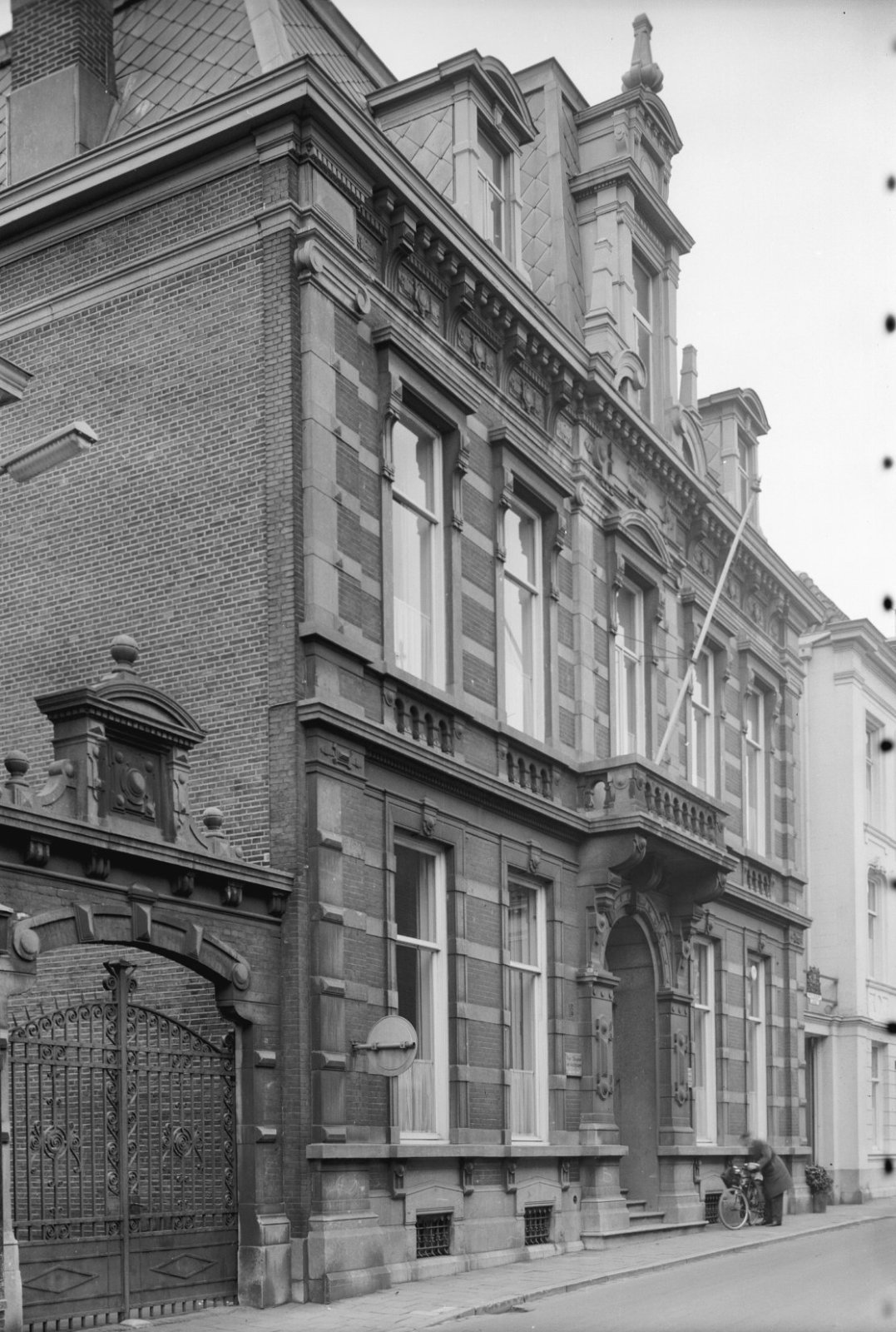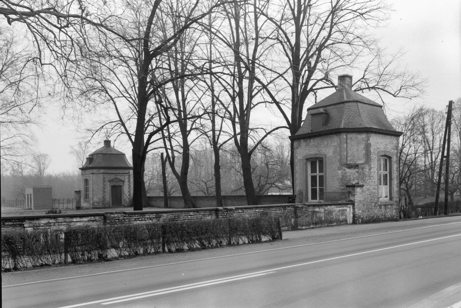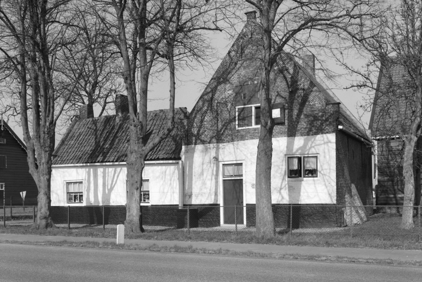 Voorgevel woonhuis en links daarvan poort met hekwerk