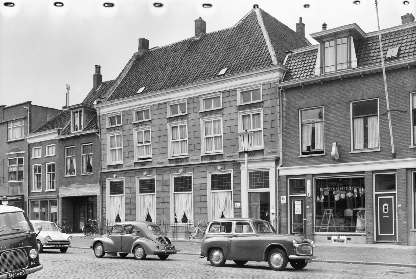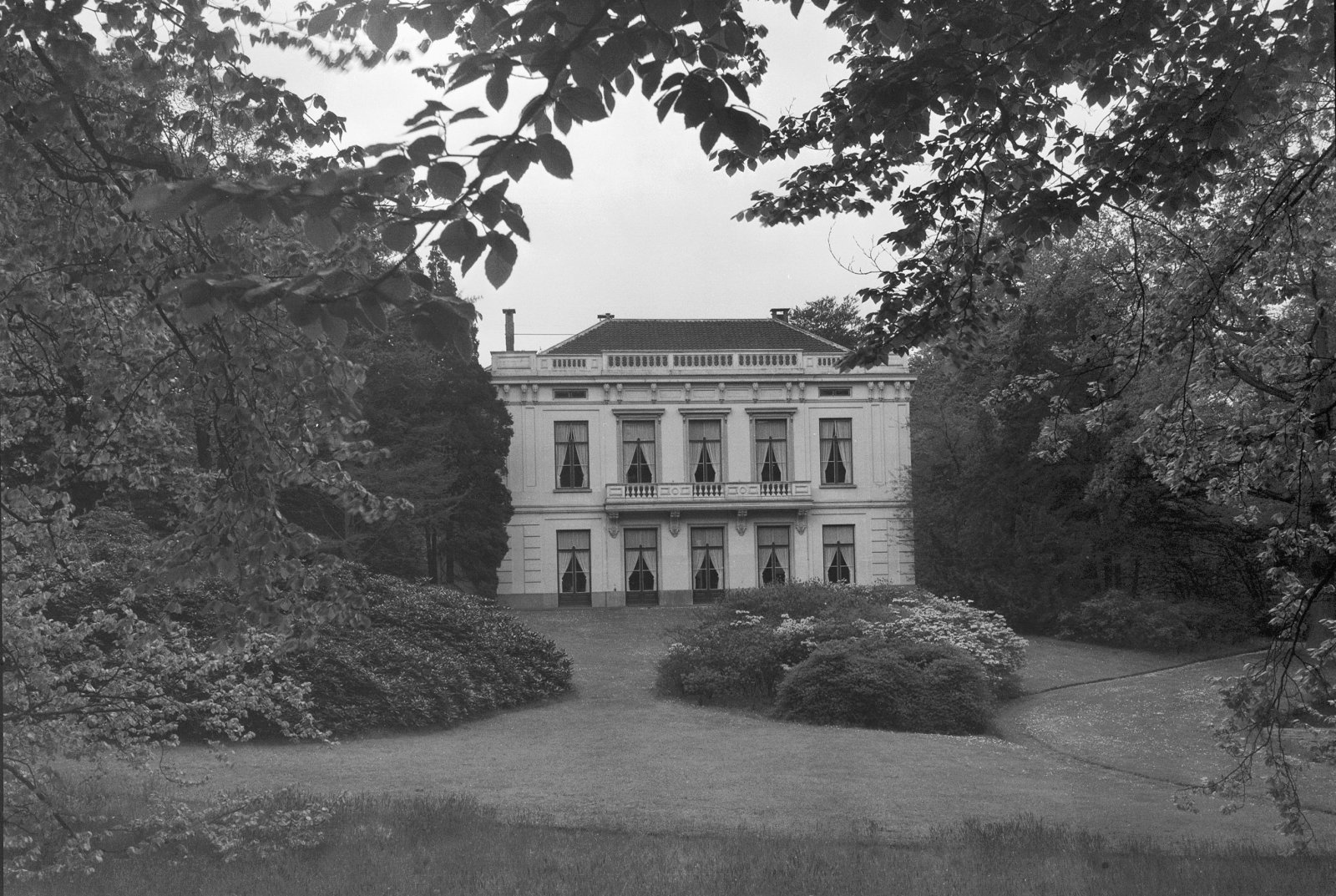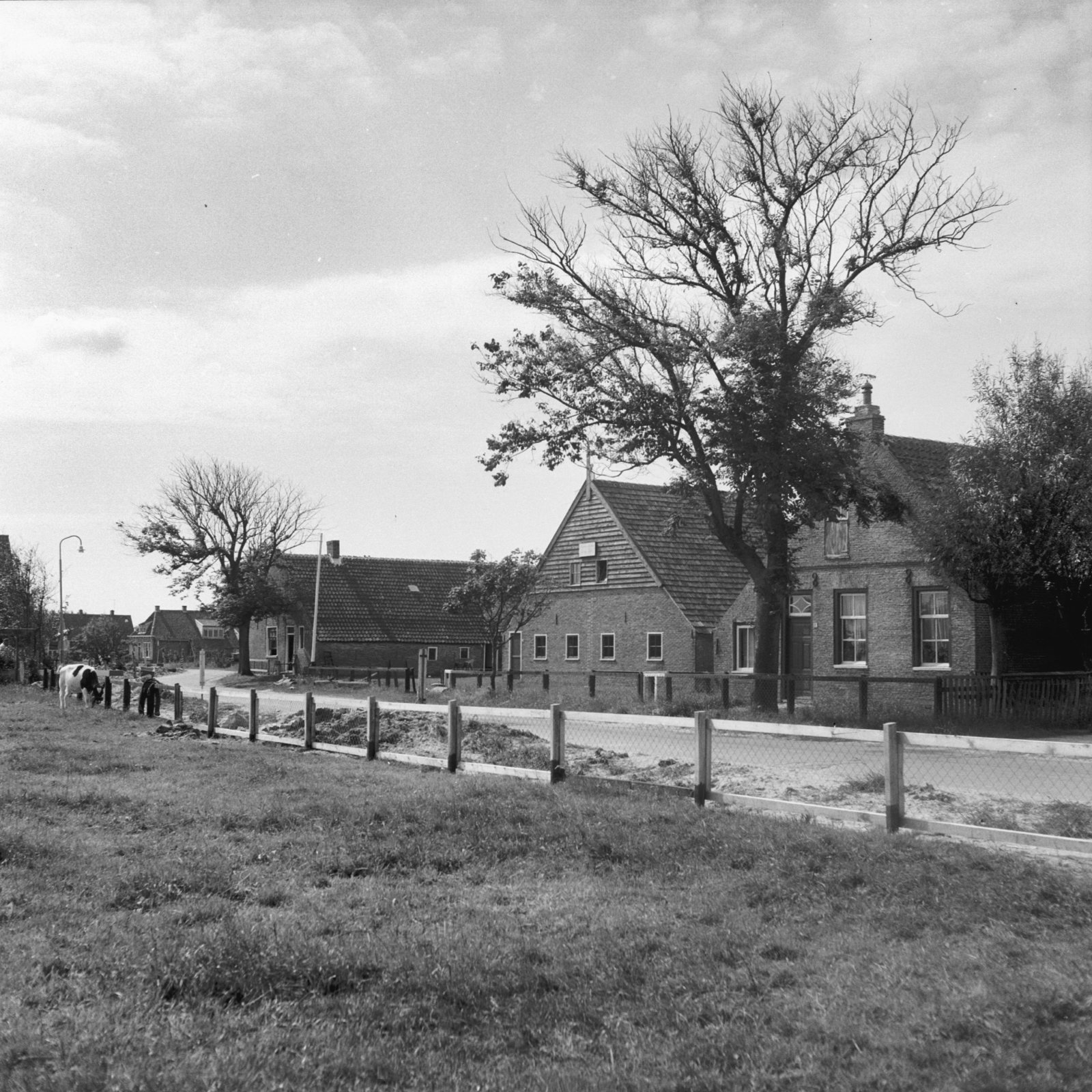 Voorgevel woonhuis en links daarvan poort met hekwerk