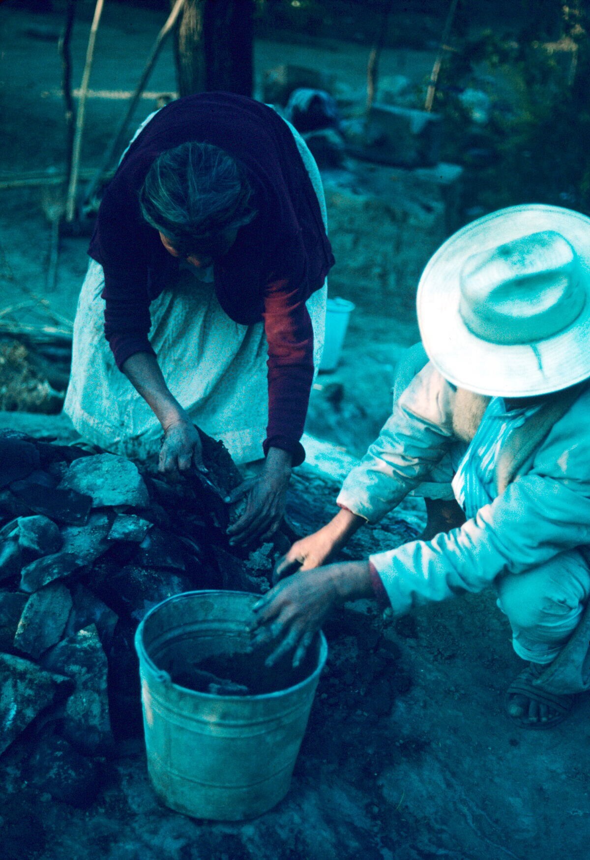 pottenbakster Juana Domínguez en man, vóór het bakke...