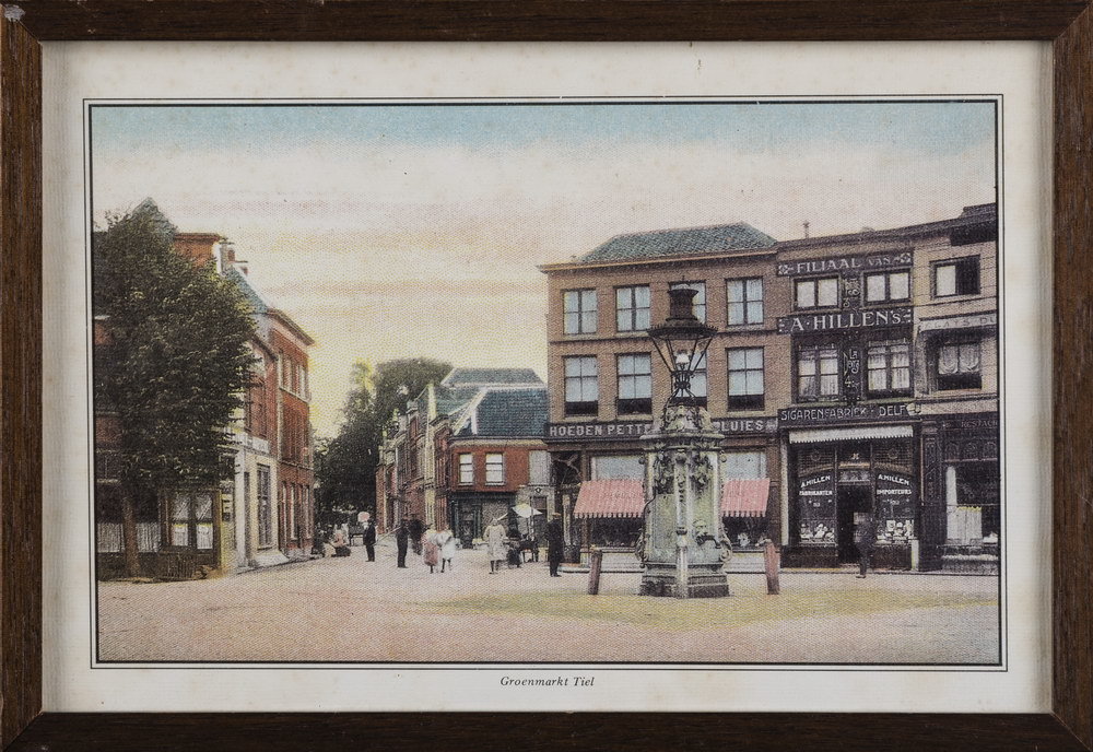 Reproductieprent voorstellende de Groenmarkt te Tiel...