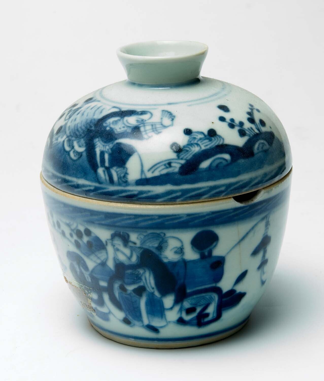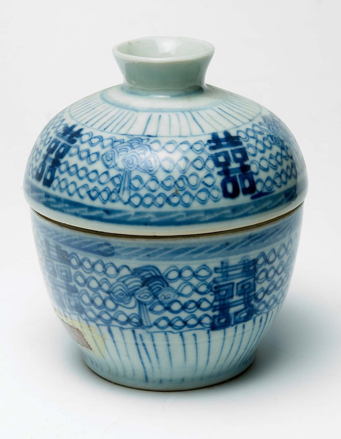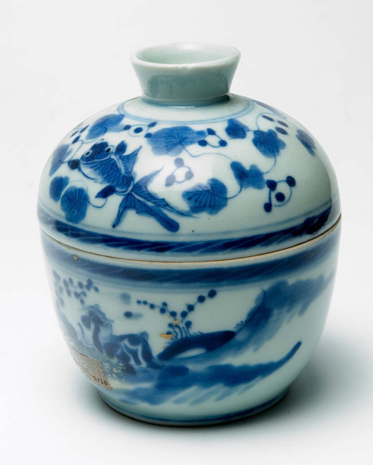 Medicijnkom met deksel van blauw porselein