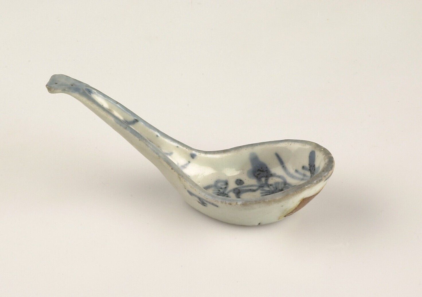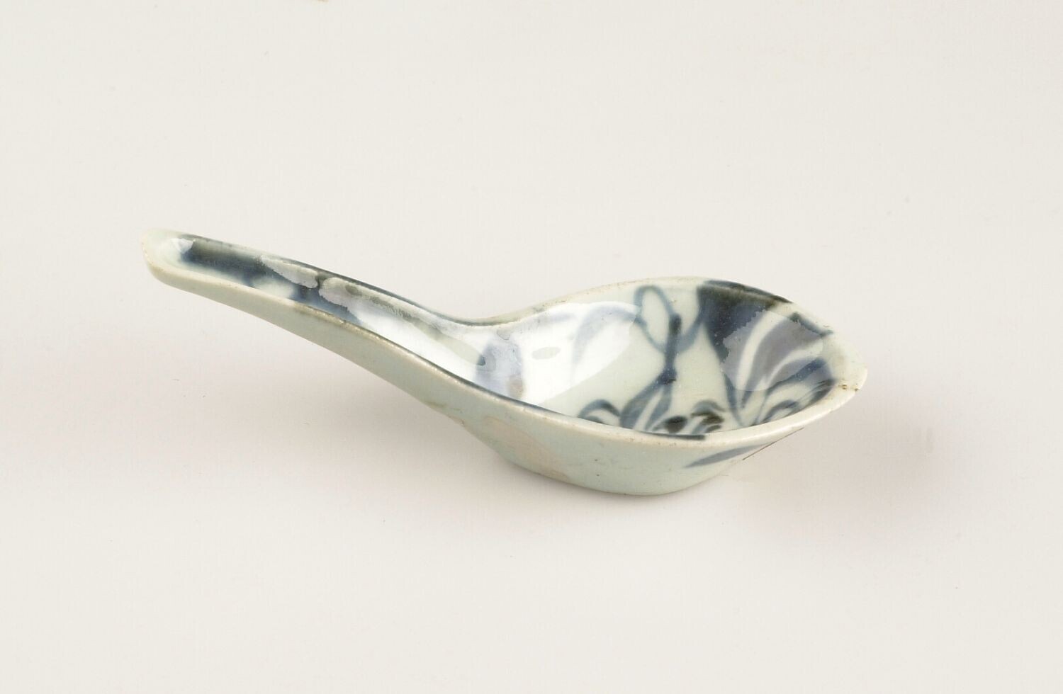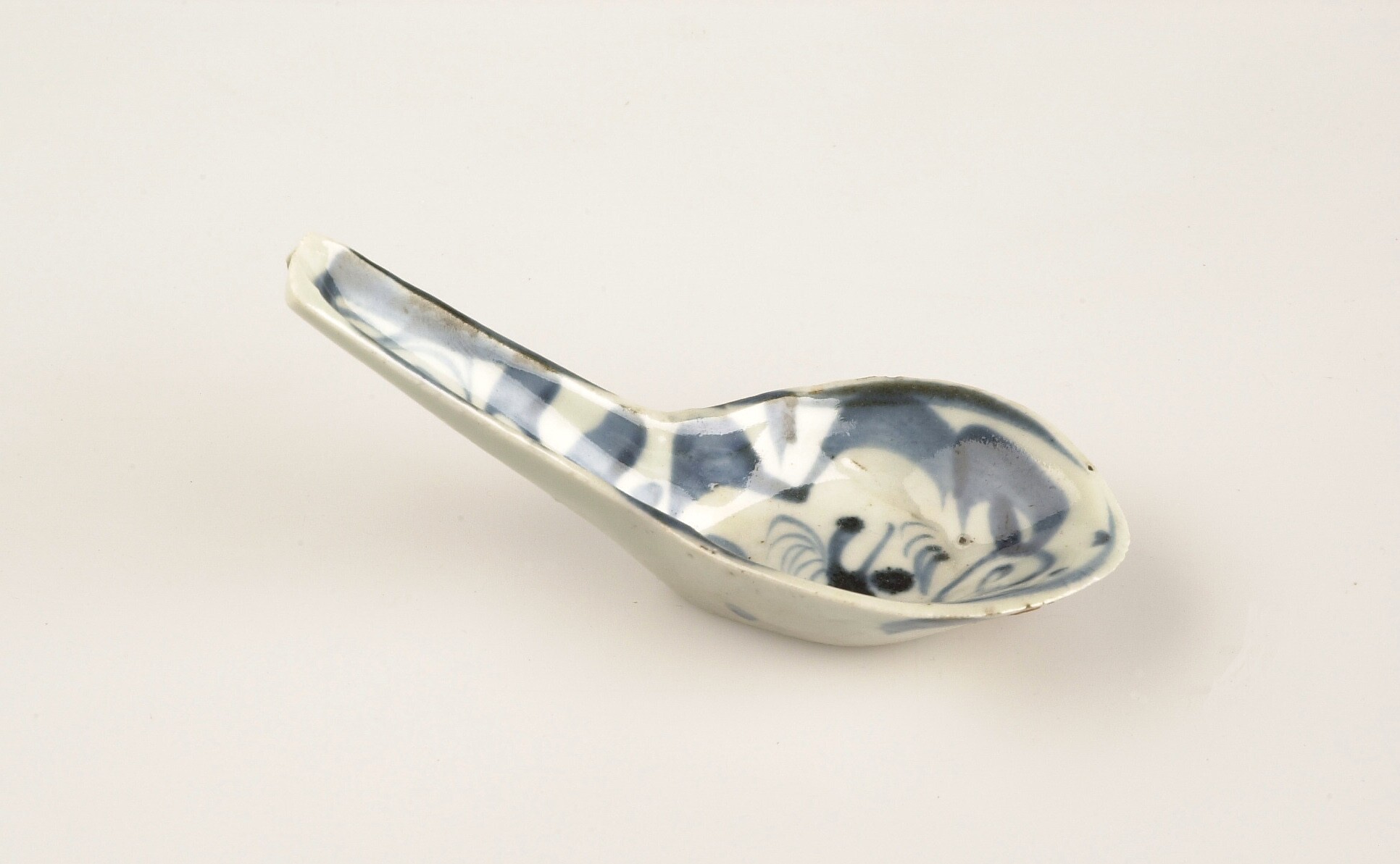 Porseleinenen medicijnlepel met blauwe versiering