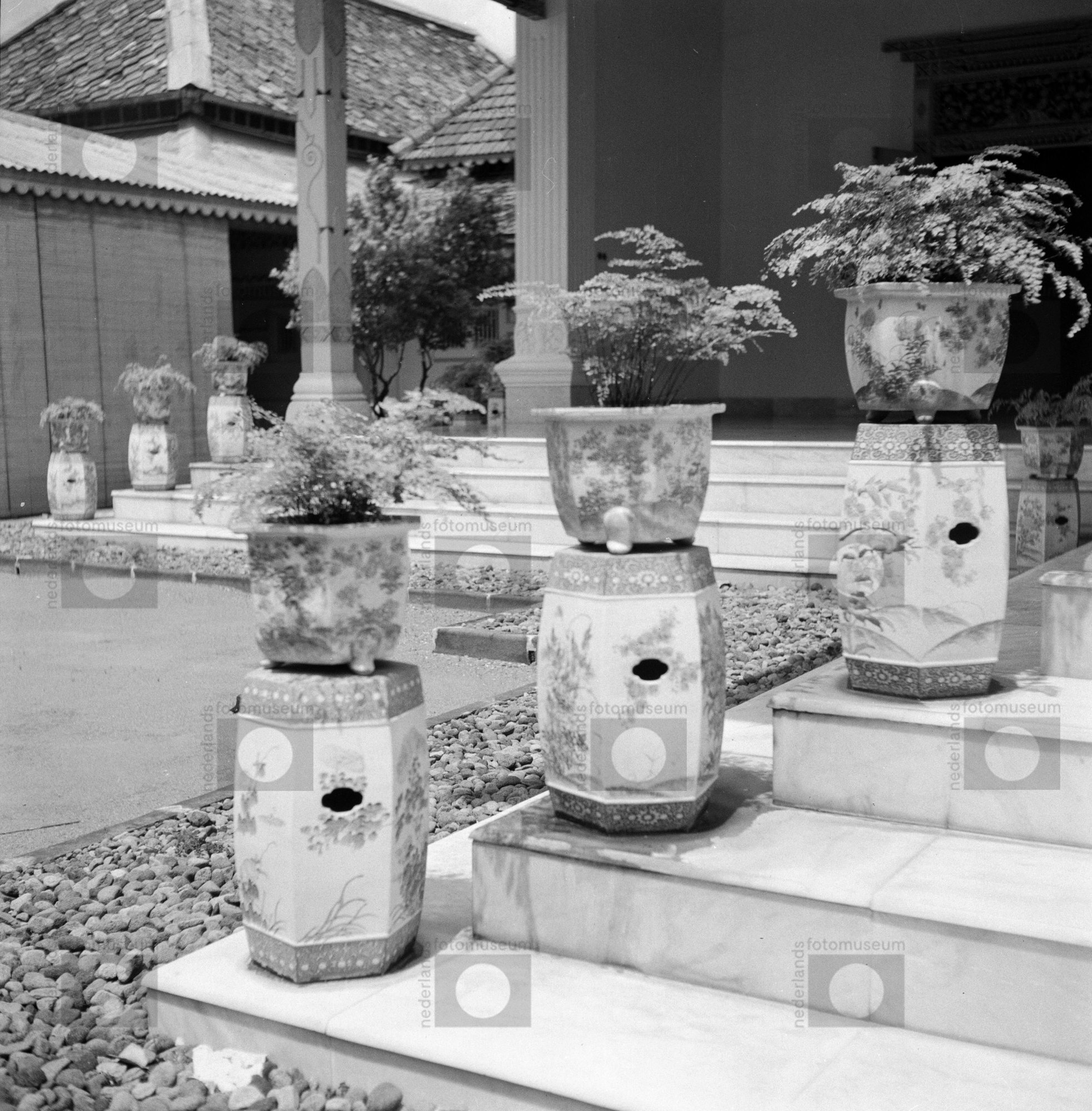 Marmeren bordes met potplanten in de kraton van de s...
