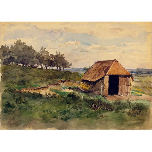 Aquarel: Armengesticht met op de achtergrond Plechel...