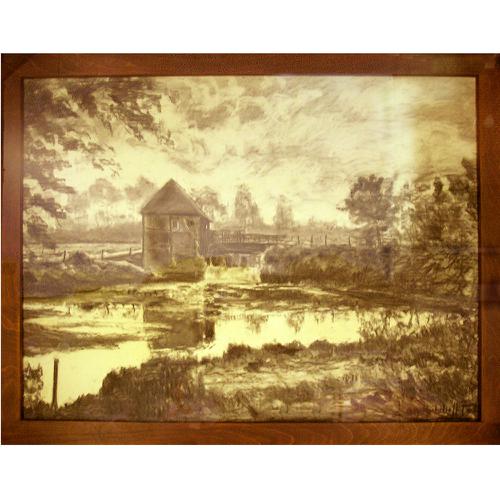 Zwart-krijttekening: Watermolen te Oele