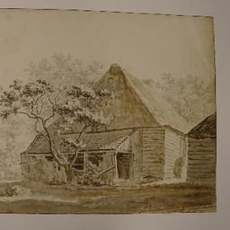Boerenschuur tussen bomen