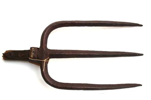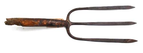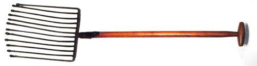 Vlas-, schoven-of korenvork van metaal met houten st...