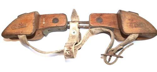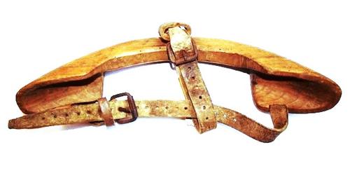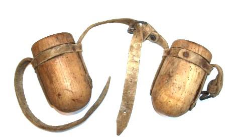 Hoorngeleider van hout met leren riemen gebruikt om ...