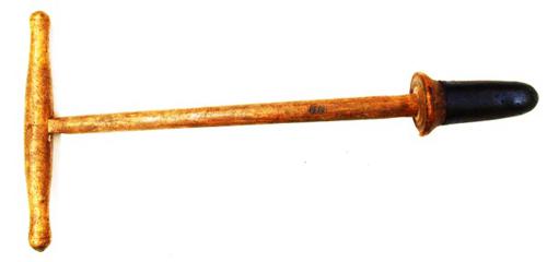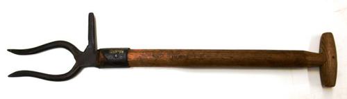 Aardappelpootstok van hout en metaal gebruikt om poo...
