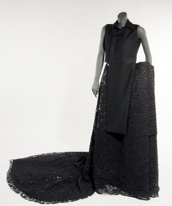 Avondensemble bestaande uit bodysuit van zwart wolle...