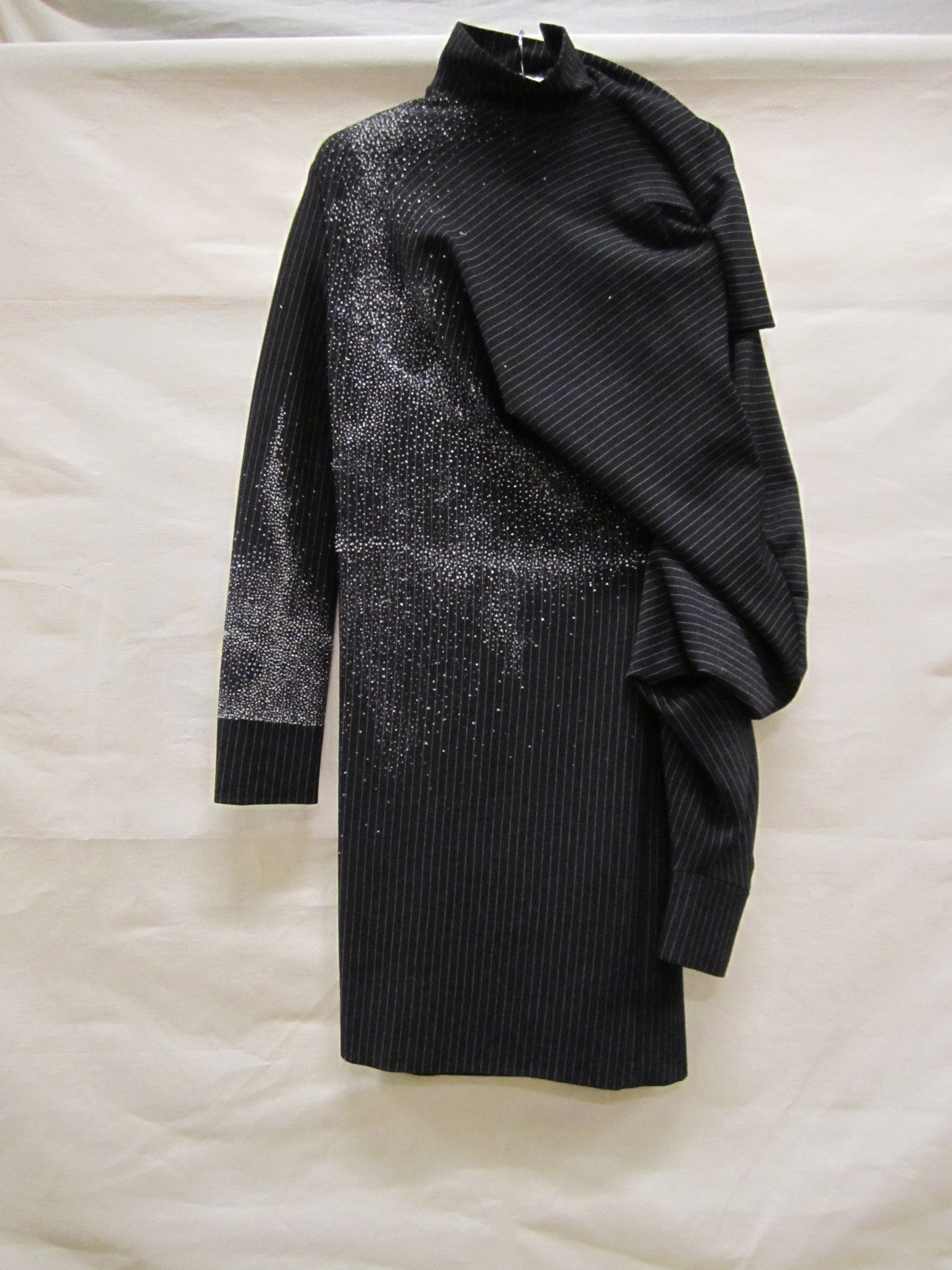 Jurk van zwart/wit gestreept wollen tricot met ingew...