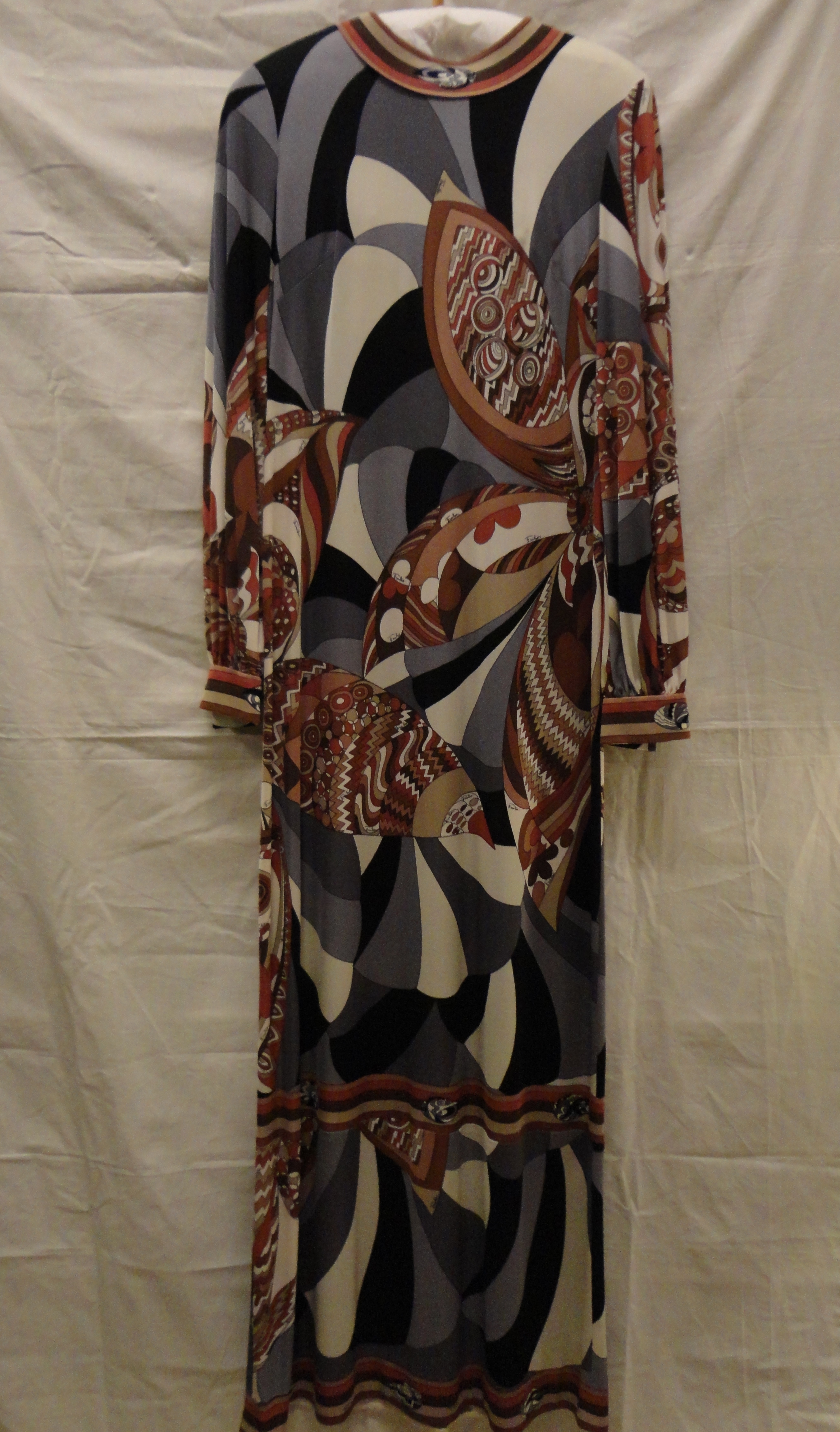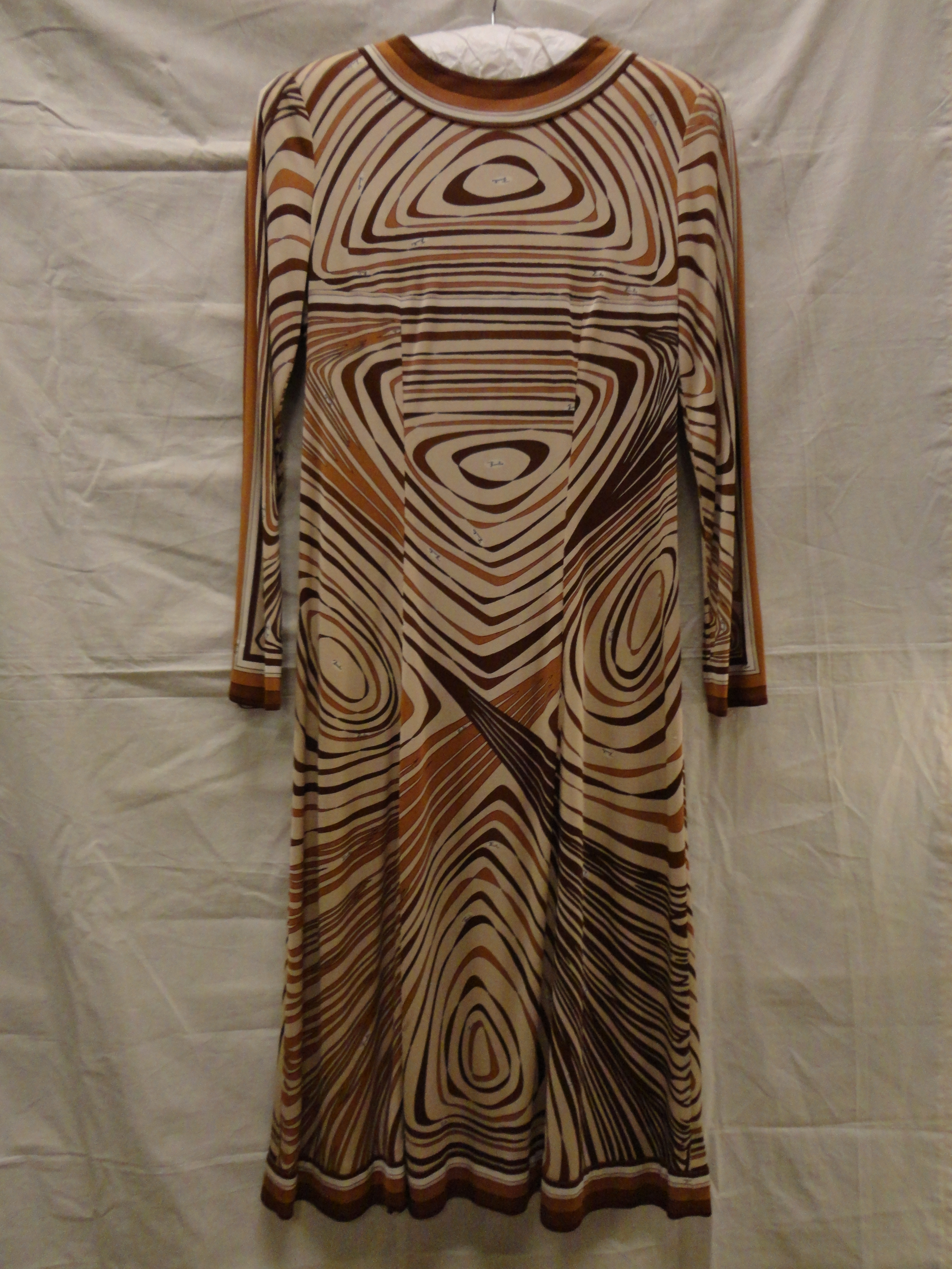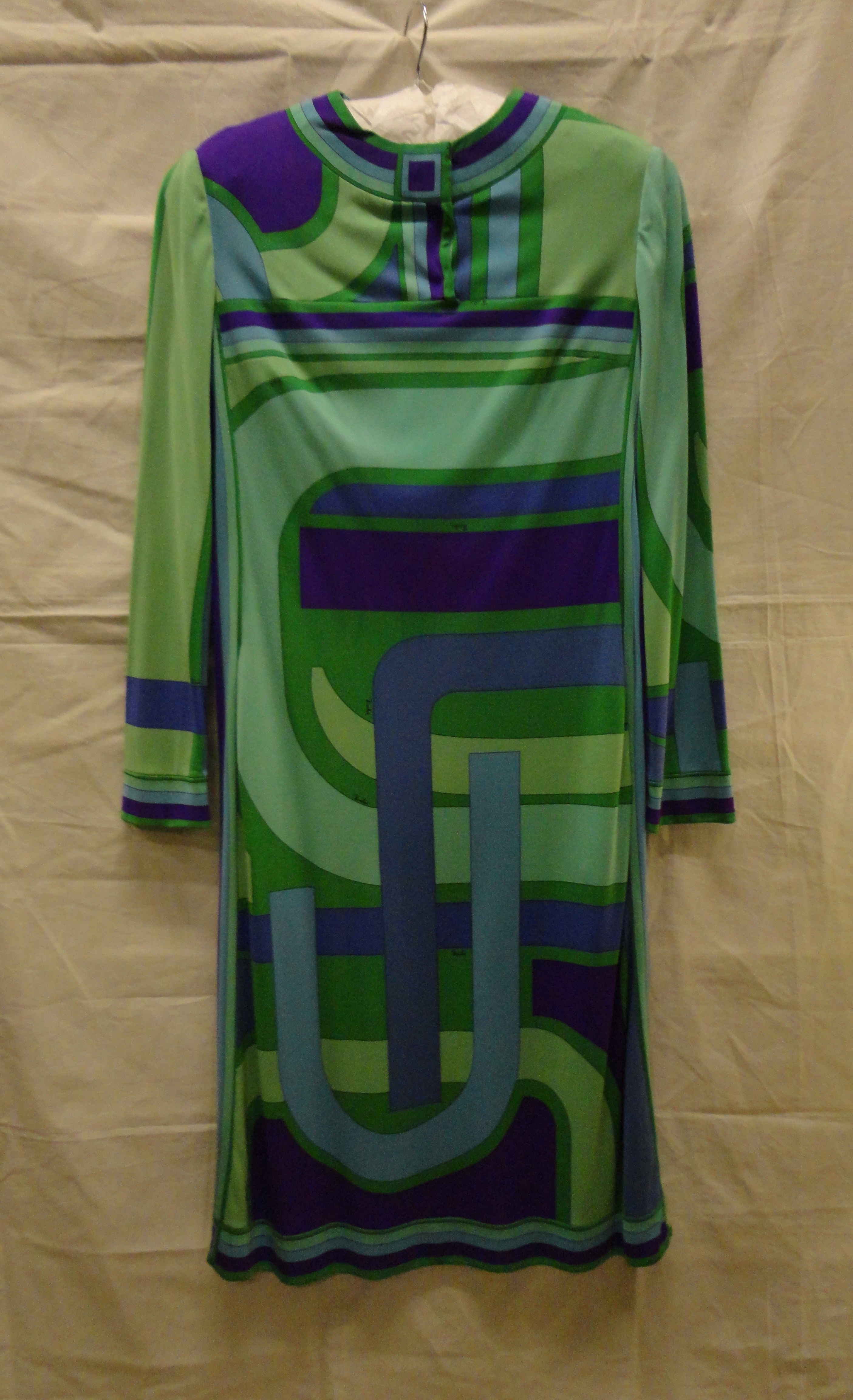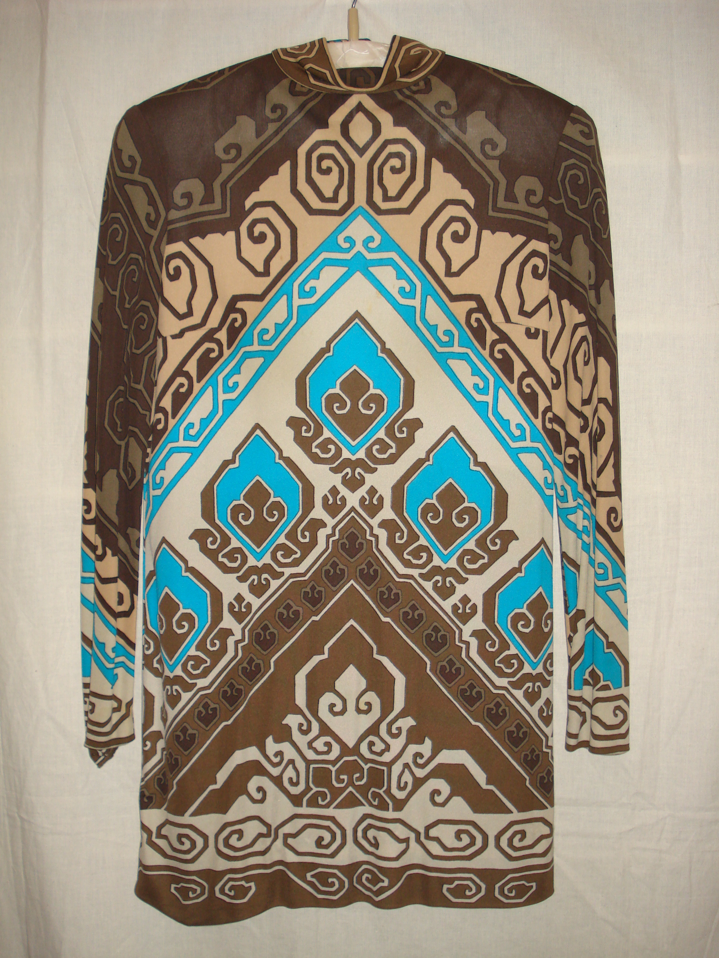 Jurk van bedrukt zijden tricot met geometrische moti...
