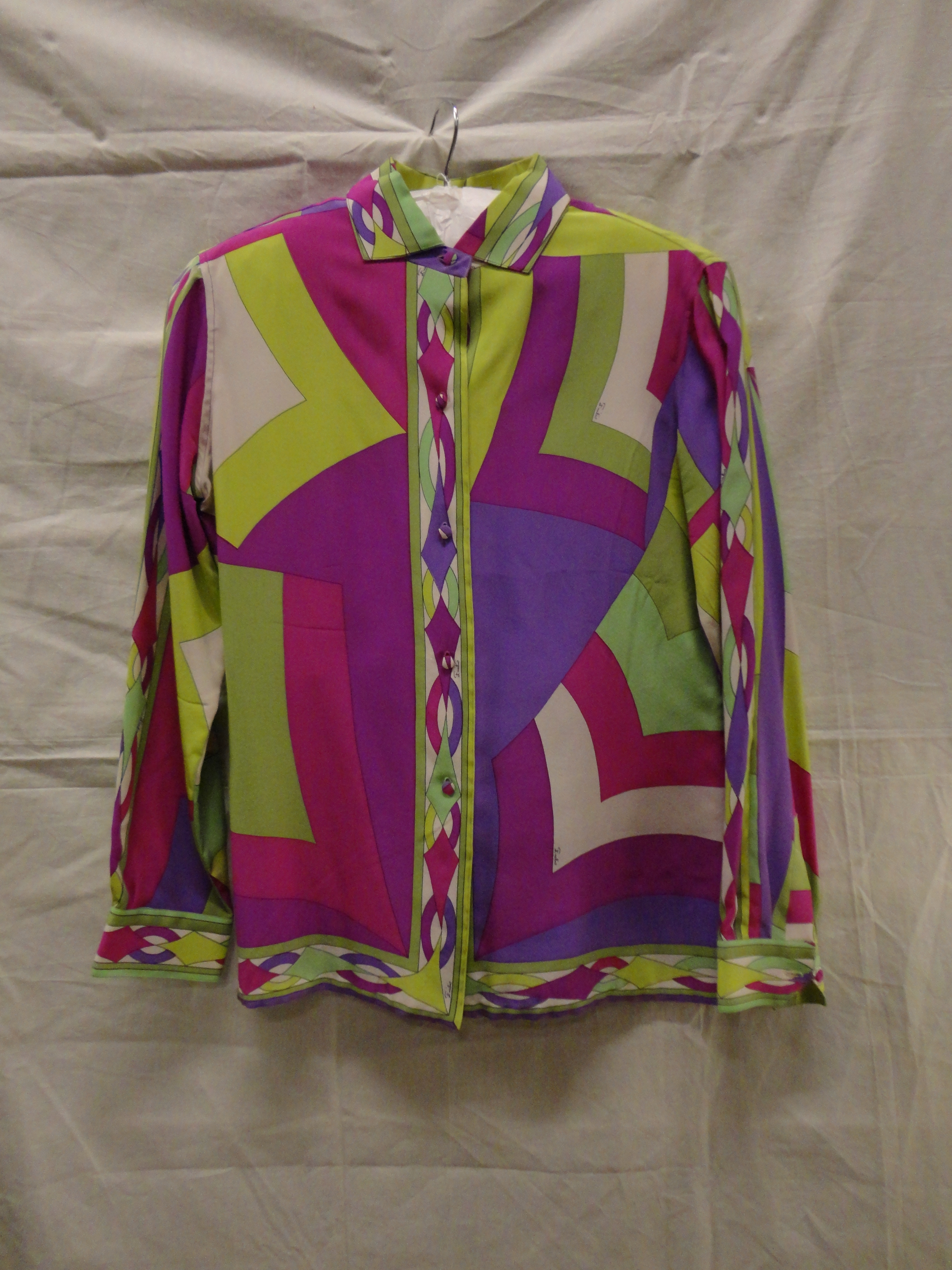 Blouse van bedrukt zijden tricot met geometrische mo...